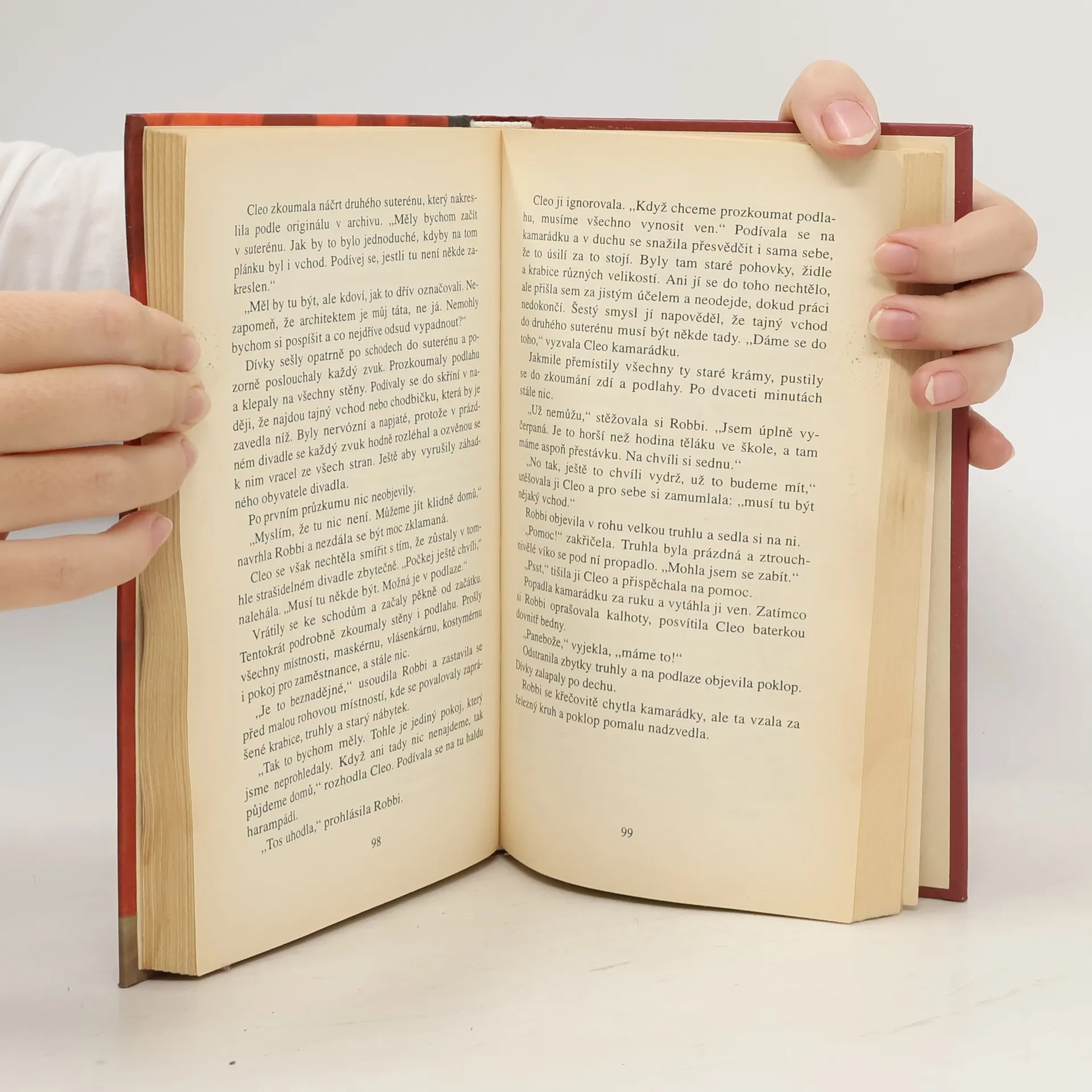 Ve volném pokračování knihy TAJNÁ AGENTKA se znovu setkáváme s třináctiletou Cleo Oliverovou a prožíváme její další neuvěřitelná dobrodružství. Tentokrát se Cleo, mistryně převleků, která dokáže vyřešit i ty nejsložitější záhady, snaží proniknout do divadla na Brodwayi, kde v jednom z představení hraje hlavní roli matka její kamarádky Robbi Richardsonové. Cleo a Robbi jsou divadelní hrou nadšené, brzy však zjistí, že skutečné drama se neodehrává na jevišti, ale v zákulisí. Činnost souboru provází řada potíží a nehod, které vůbec nevypadají jako pouhé nehody. Když se ztratí i nefritový náhrdelník paní Richardsonové, Cleo se rozhodne opět zasáhnout. V převleku se vydá na průzkum a zdá se, že vyřešení případu nebude snadný oříšek...