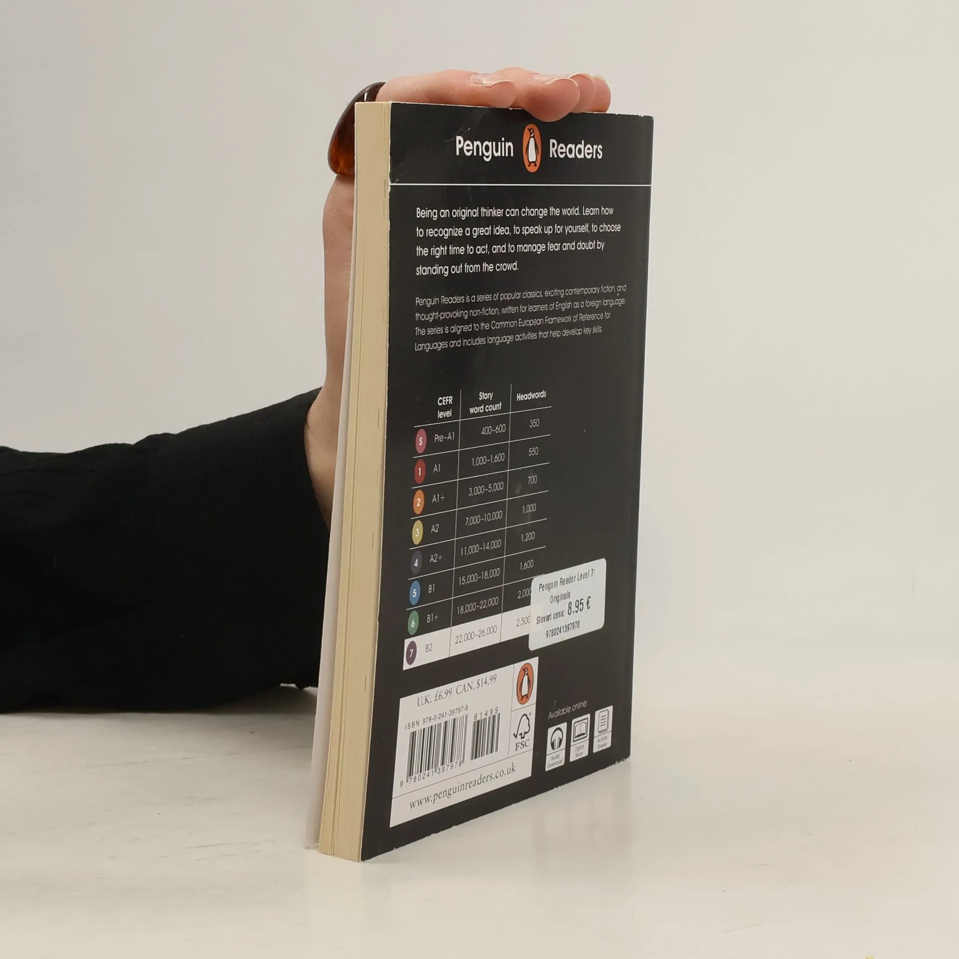 Being an original thinker can change the world. Learn how to recognize a great idea, to speak up for yourself, to choose the right time to act, and to manage fear and doubt by standing out from the crowd. Penguin Readers is a series of popular classics, exciting contemporary fiction, and thought-provoking non- fiction written for learners of English as a foreign language. Beautifully illustrated and carefully adapted, the series introduces language learners around the world to the bestselling authors and most compelling content from Penguin Random House. The eight levels of Penguin Readers follow the Common European Framework and include language activities that help readers to develop key skills. Originals, a Level 7 Reader, is B2 in the CEFR framework. The longer text is made up of sentences with up to four clauses, introducing future perfect simple, mixed conditionals, past perfect continuous, mixed conditionals, more complex passive forms and modals for deduction in the past.
