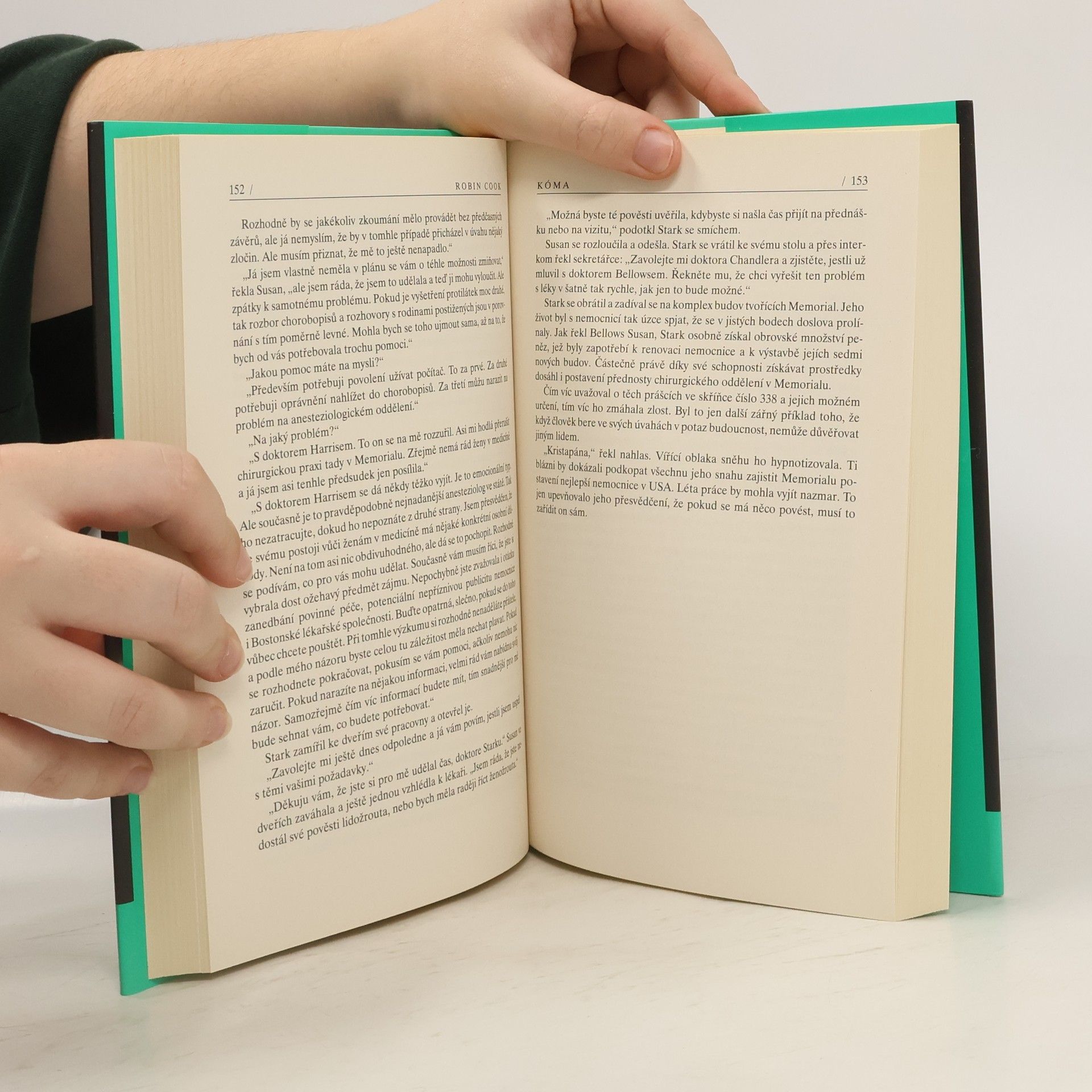 Na začátku příběhu je pacientka, která se neprobere z kómatu, a zděšená medička Susan Wheelová absolvující svou první lékařskou praxi ve vyhlášené bostonské nemocnici Memorial. Zvídavost pohledné a upřímné Susan roztočí riskantní kolotoč událostí, když se vydá po stopách nezákonného obchodu s lidskými orgány. Pomáhá jí její kolega a milenec, doktor Bellows, který však úzkostlivě dbá na to, aby nepřekročil hranice kariérní sebezáchovy a svého postu v nemocnici. Susan se pouští do zdánlivě předem prohraného boje s dokonale sehranou lékařskou mašinérií. Ztrácí stopu, ale nevzdává se… Netuší, že oprávněnost svého podezření bude muset prokazovat tváří v tvář najatému vrahovi. Ten je však pouhým vykonavatelem, a proto se vnucuje otázka, kdo je onou šedou eminencí nemocnice a proč se tak vytrvale staví proti snaze nezkušené medičky poodhalit tajemství kómatu. Jeden z prvních a současně nejnapínavějších Cookových románů, který je podobně jako autorova další díla varovným mementem před porušováním lékařské etiky v jedné z nejcitlivějších oblastí zdravotní péče o člověka.