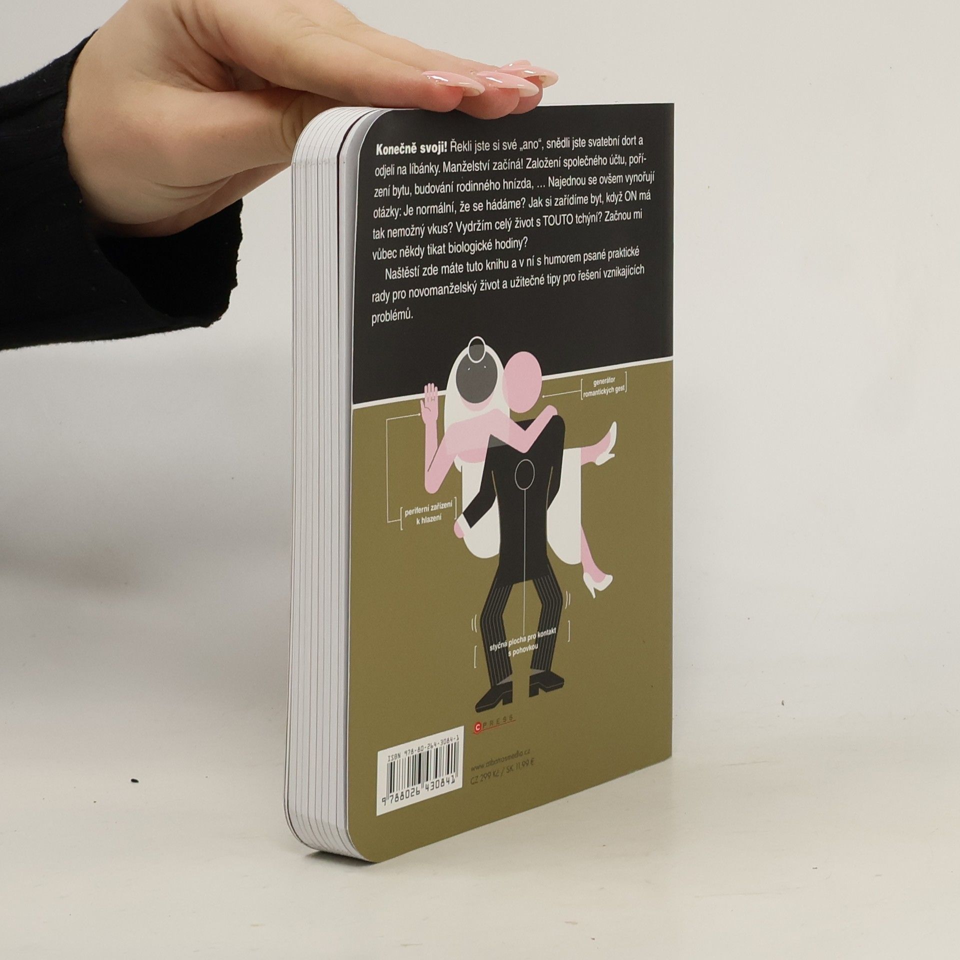 Konečně svoji! Řekli jste si své „ano“, snědli jste svatební dort a odjeli na líbánky. Manželství začíná! Založení společného účtu, pořízení bytu, budování rodinného hnízda, ... Najednou se ovšem vynořují otázky: Je normální, že se hádáme? Jak si zařídíme byt, když ON má tak nemožný vkus? Vydržím celý život s TOUTO tchýní? Začnou mi vůbec někdy tikat biologické hodiny? Naštěstí zde máte tuto knihu a v ní s humorem psané praktické rady pro novomanželský život a užitečné tipy pro řešení vznikajících problémů.