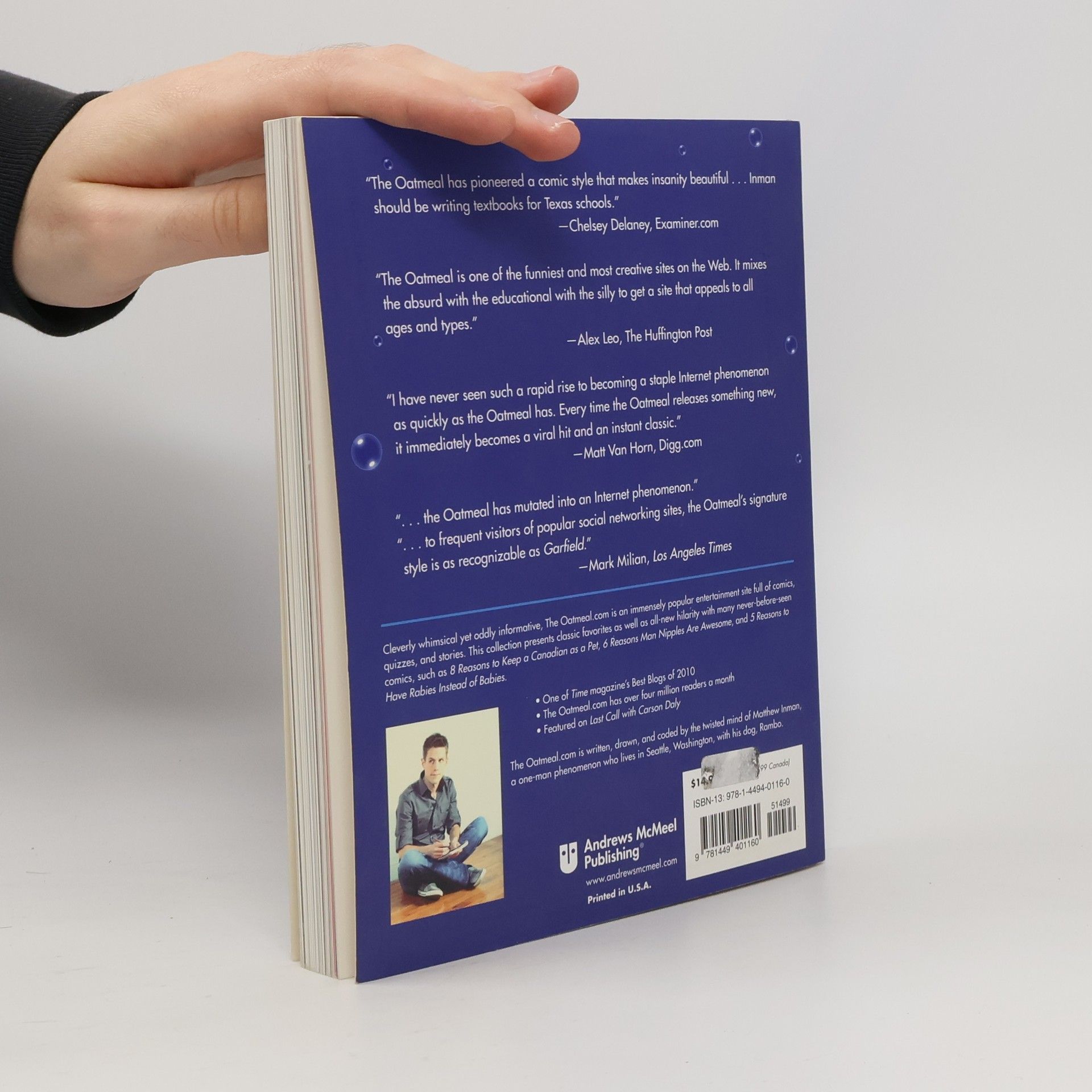 Prepare to laugh your ass off.The hilarity of TheOatmeal.com is now presented in book form with 35 never-before-seen pieces and 25 classic favorites from the Web site, including 6 Types of Crappy Hugs and 17 Things Worth Knowing about Your Cat. In Matthew Inman's 5 Very Good Reasons to Punch a Dolphin in the Mouth (And Other Useful Guides), samurai sword-wielding kittens and hamsters that love .50-caliber machine guns commingle with a cracked out Tyrannosaur that is extremely hard to potty train. Bacon is better than true love and you may awake in the middle of the night to find your nephew nibbling on your toes. Inman creates these quirky scenes for theoatmeal.com, which launched in July 2009 and already has more than 82 million page views. In fact, every 15 to 30 seconds, someone Googles one of theoatmeal.com's creations. Now, 60 of Inman's comic illustrations and life-bending guides are presented in full-color inside 5 Very Good Reasons to Punch a Dolphin in the Mouth (And Other Useful Guides). Consider such handy advice as: * 4 Reasons to Carry a Shovel at All Times * 6 Types of Crappy Hugs * 8 Ways to Tell if Your Loved One Plans to Eat You * 17 Things Worth Knowing About Your Cat * 20 Things Worth Knowing About Beer