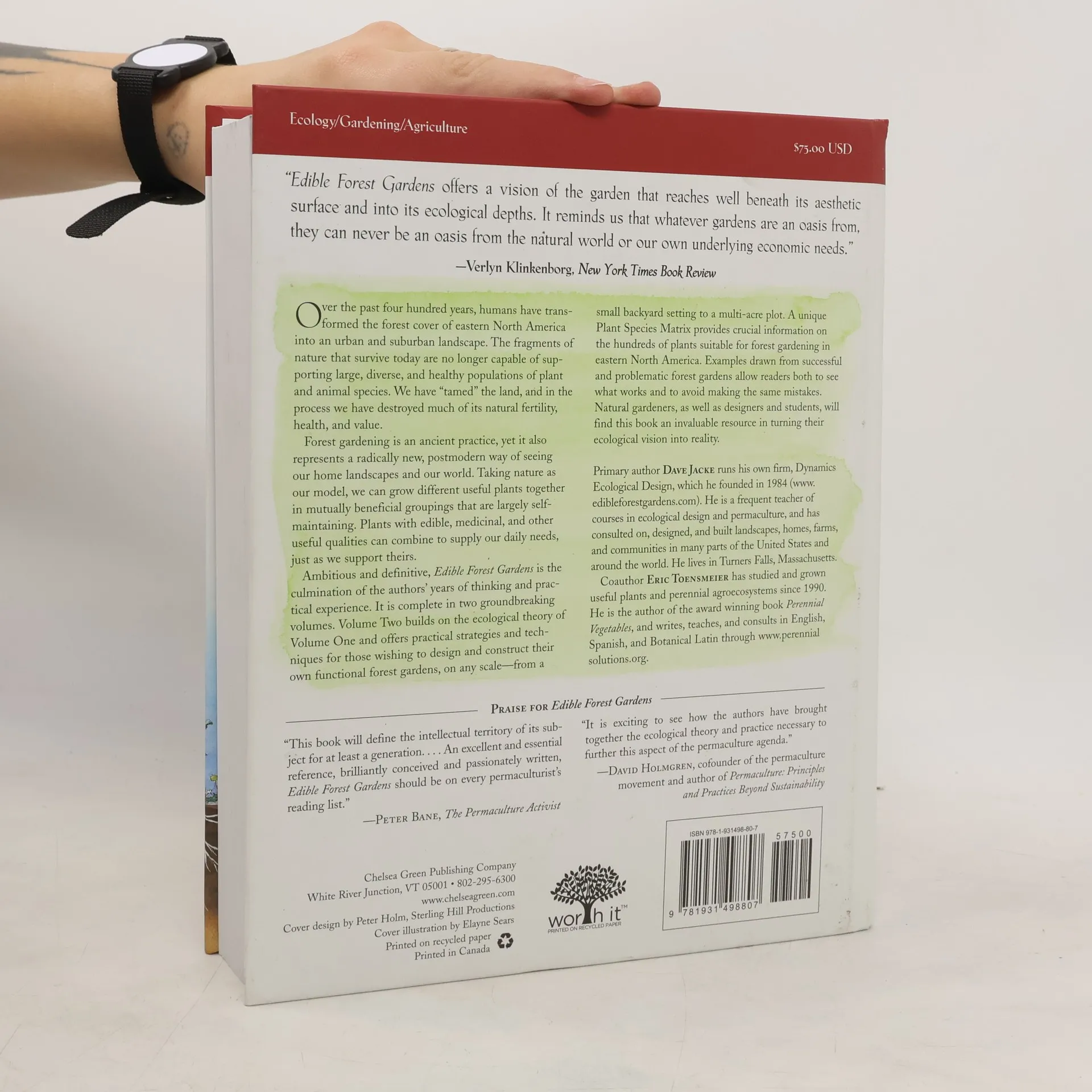 "Edible Forest Gardens" is a groundbreaking two-volume work that spells out and explores the key concepts of forest ecology and applies them to the needs of natural gardeners in temperate climates. Volume I lays out the vision of the forest garden and explains the basic ecological principles that make it work. In Volume II, Dave Jacke and Eric Toensmeier move on to practical considerations: concrete ways to design, establish, and maintain your own forest garden. Along the way they present case studies and examples, as well as tables, illustrations, and a uniquely valuable "plant matrix" that lists hundreds of the best edible and useful species.Taken together, the two volumes of "Edible Forest Gardens" offer an advanced course in ecological gardening--one that will forever change the way you look at plants and your environment.