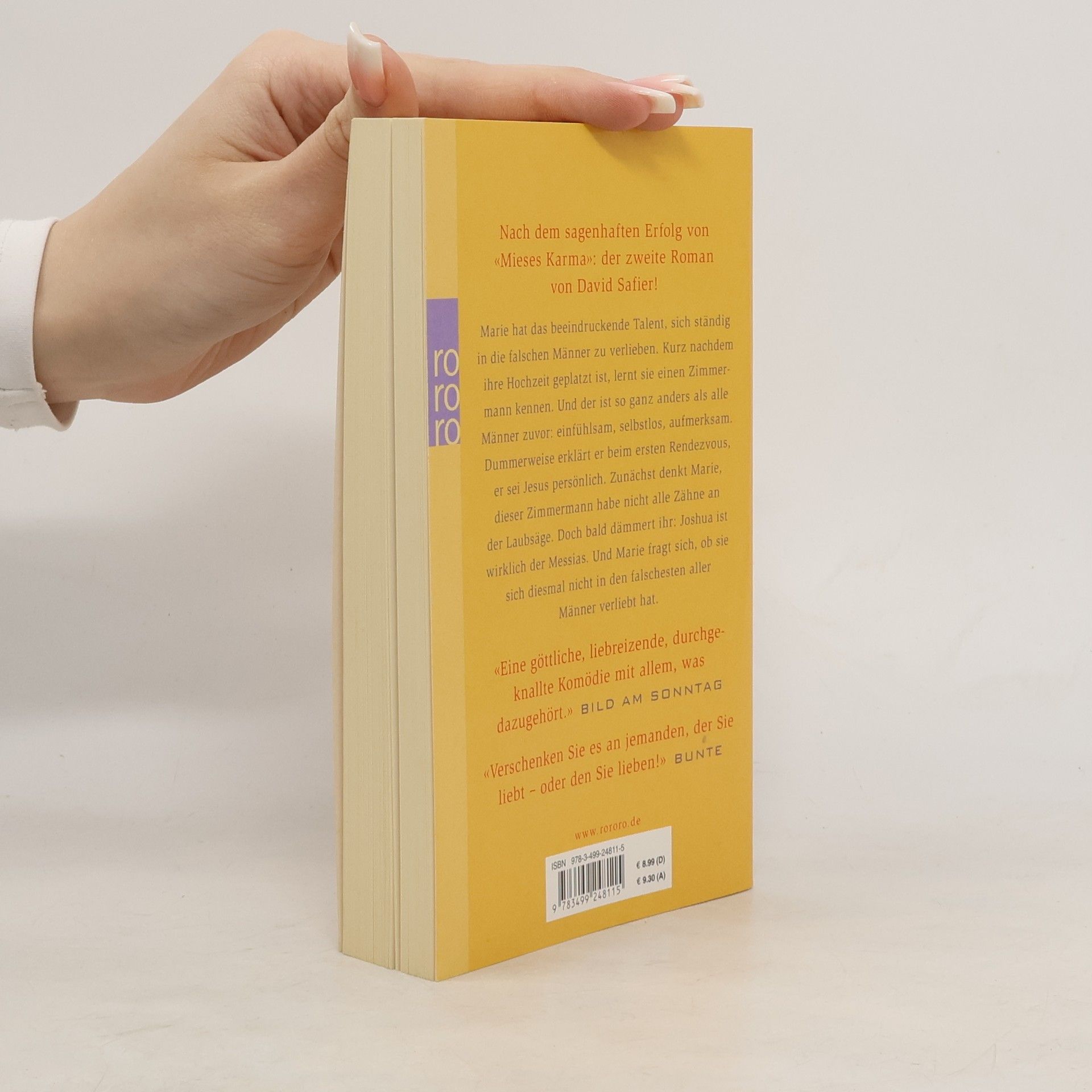 Nach dem sagenhaften Erfolg von «Mieses Karma»: Der zweite Roman von David Safier! Marie hat das beeindruckende Talent, sich ständig in die falschen Männer zu verlieben. Kurz nachdem ihre Hochzeit geplatzt ist, lernt sie einen Zimmermann kennen. Und der ist so ganz anders als alle Männer zuvor: einfühlsam, selbstlos, aufmerksam. Dummerweise erklärt er beim ersten Rendezvous, er sei Jesus persönlich. Zunächst denkt Marie, dieser Zimmermann habe nicht alle Zähne an der Laubsäge. Doch bald dämmert ihr: Joshua ist wirklich der Messias. Und Marie fragt sich, ob sie sich diesmal nicht in den falschesten aller Männer verliebt hat. «Verschenken Sie es an jemanden, der Sie liebt – oder den Sie lieben!» (Bunte)