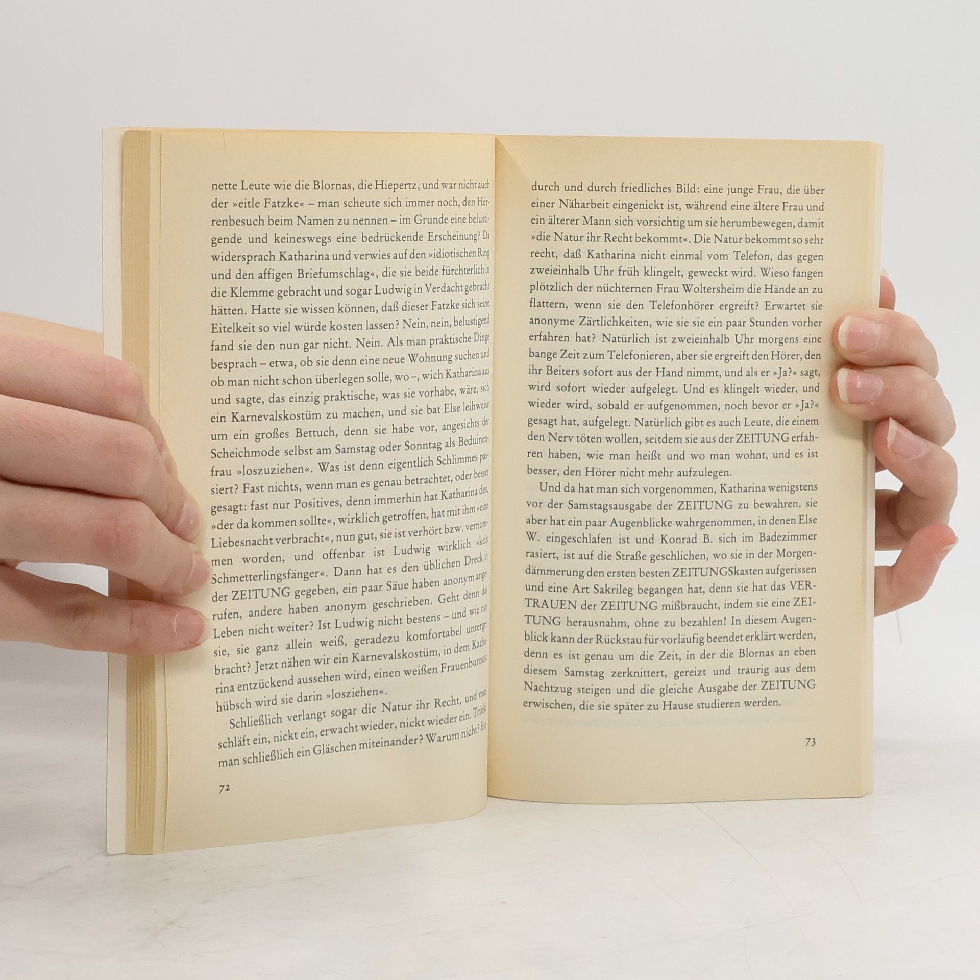 »Ähnlichkeiten mit den Praktiken der ›Bild‹-Zeitung [...] sind weder beabsichtigt noch zufällig, sondern unvermeidlich.« Aus dem Vorwort Bölls Katharina Blum ist eine junge hübsche Haushälterin, die sich eine kleine Eigentumswohnung und einen Volkswagen leisten kann. Sie hat ein heiter-bescheidenes Wesen und wird, weil sie Zudringlichkeiten der Männer verabscheut, in ihrer Umgebung die »Nonne« genannt. Diese Frau verliebt sich spontan in einen jungen Mann, einen von der Polizei gesuchten radikalen Rechtsbrecher. Sie verhilft ihm zur Flucht und gerät in den Mittelpunkt der Sensationsmache einer großen Boulevardzeitung. Die Situation eskaliert, als der Journalist Werner Tötges in ihre Wohnung kommt ...