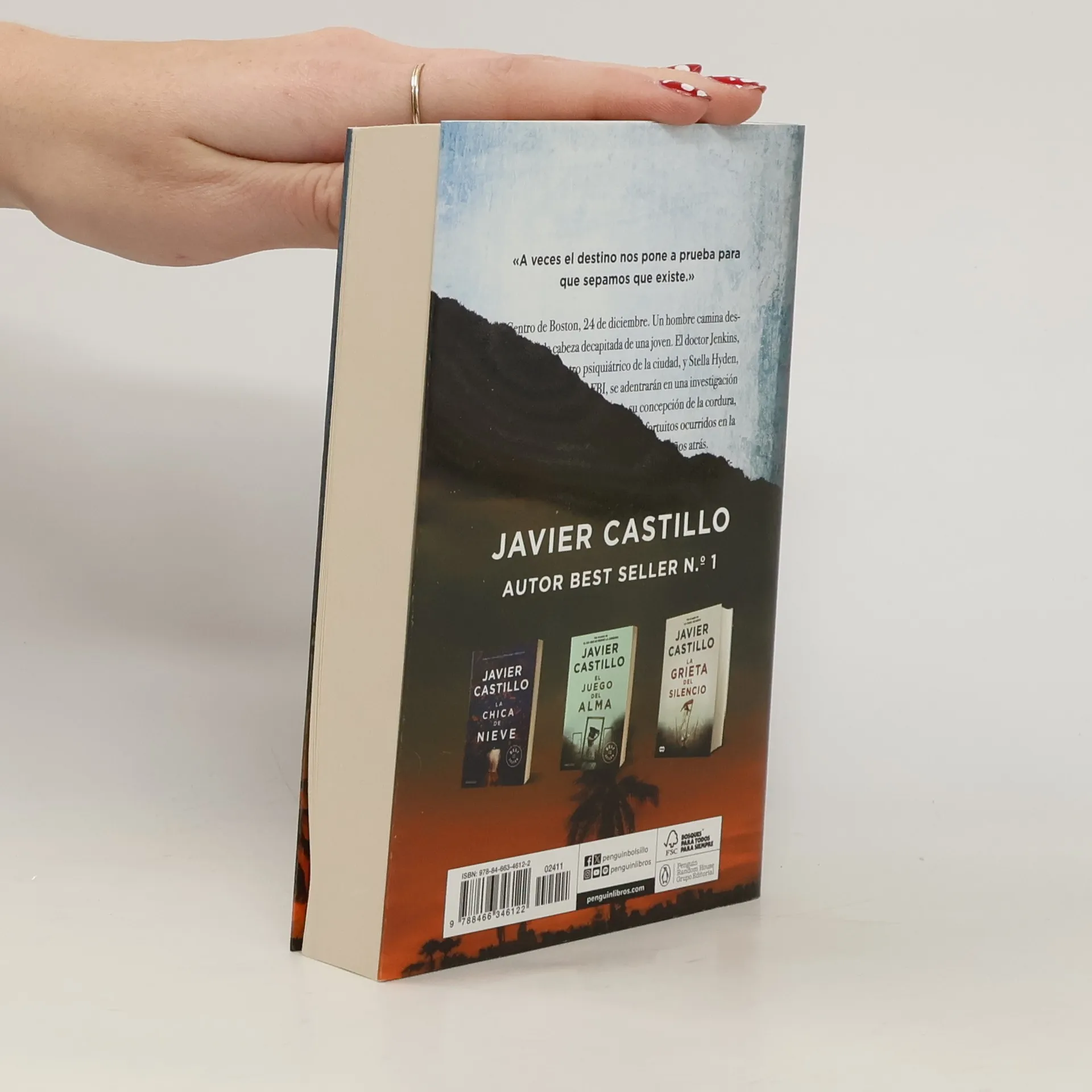 Opiniones de lectores: “Una historia de amor rompedora e inquebrantable, de un autor hasta ahora desconocido, y que sin duda se va a convertir en el fenómeno literario del año” “Un libro aupado por el boca a boca, de esos que te dejan toda una noche sin dormir” “Maravilloso. No puedo decir nada más”. Sinopsis En el centro de Boston, a las 12 de la mañana de un 24 de diciembre, un hombre camina desnudo con la cabeza decapitada de una joven. El Dr. Jenkins, director del centro psiquiátrico de la ciudad, y Stella Hyden, agente de perfiles del FBI, se adentrarán en una investigación que pondrá en juego sus vidas, su concepción de la cordura, y que viajará atrás 17 años hasta unos eventos fortuitos ocurridos en el misterioso pueblo de Salt Lake. "Narrada magistralmente a tres tiempos, el autor nos sumerge a ritmo de thriller en una historia de amor y odio a partes iguales, en las que se exploran los extremos del ser humano"