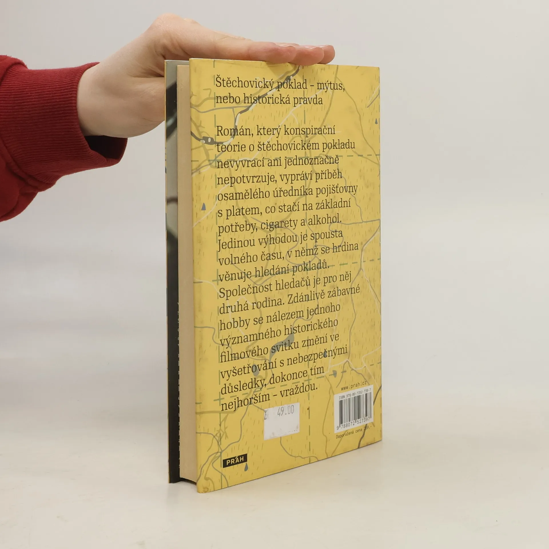 Štěchovický poklad – mýtus nebo historická pravda? Román, který konspirační teorie o štěchovickém pokladu nevyvrací ani jednoznačně nepotvrzuje, vypráví příběh osamělého úředníka pojišťovny s platem, co stačí na základní potřeby, cigarety a alkohol. Jediným jeho výhodou je spousta volného času, v němž se hrdina věnuje hledání pokladů. Společnost hledačů je pro něj druhá rodina. Zdánlivě zábavné hobby se nálezem jednoho významného historického filmového svitku změní ve vyšetřování s nebezpečnými důsledky, dokonce tím nejhorším – vraždou.