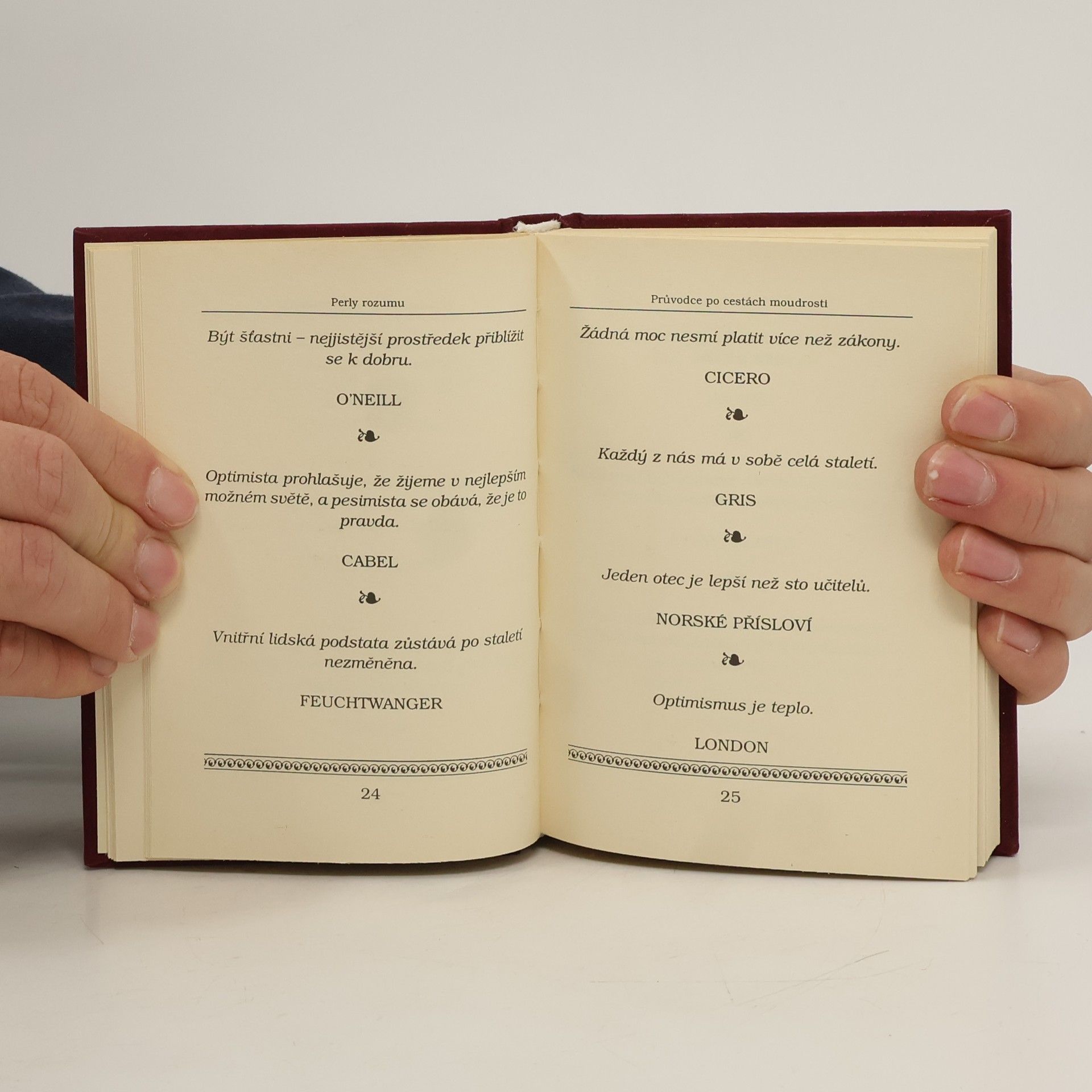 Soubor citátů a výroků našich i světových známých osobností, průvodce po cestách moudrosti. Kniha je vázaná, v dárkovém provedení – broušený samet (mikroplyš) barvy bordó, se zlatoražbou, prokládaným hřbetem a barevným štítkem.