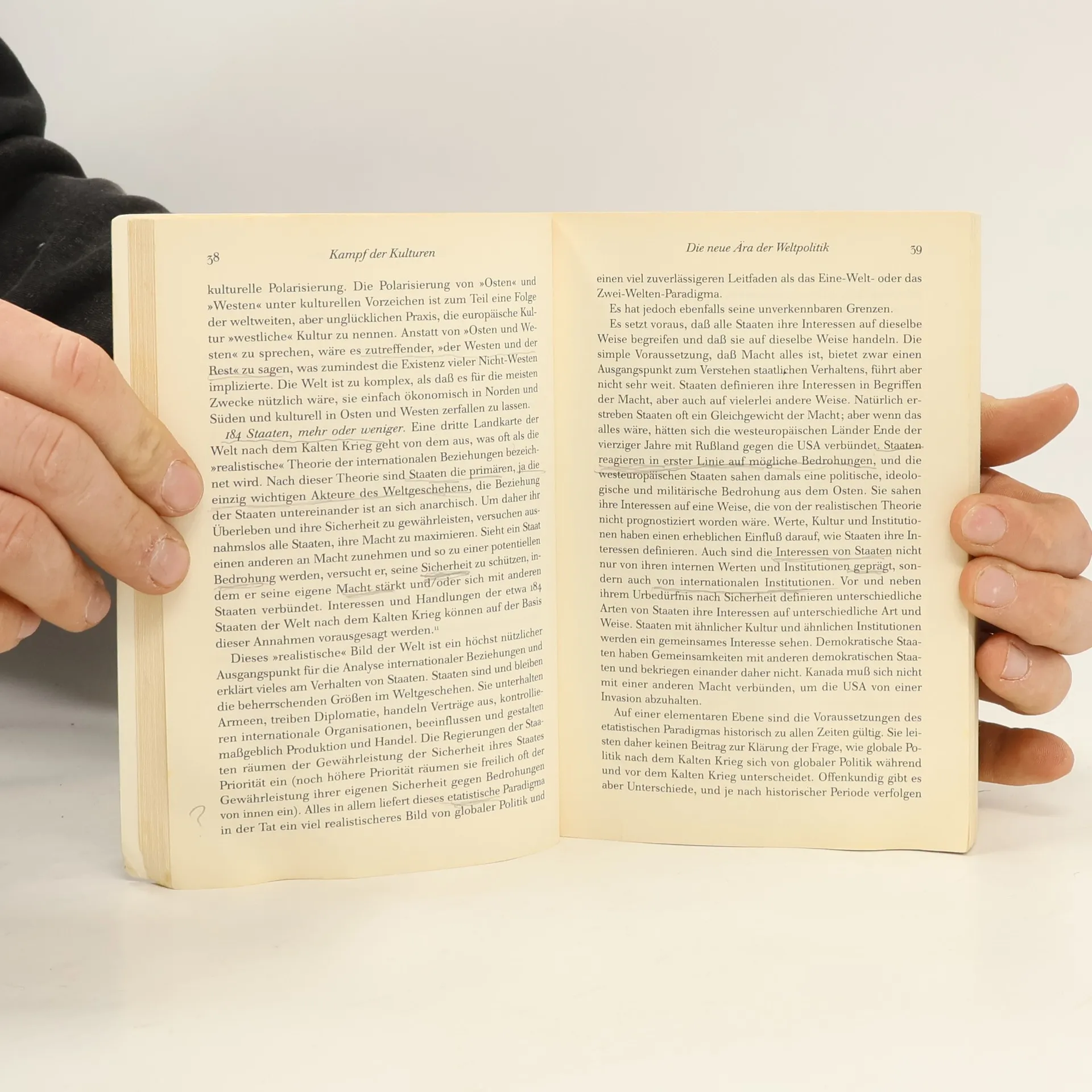 Der amerikanische Politikwissenschaftler Samuel P. Huntington stellt in seinem Buch die Frage nach den weltpolitischen Entwicklungen im 21. Jahrhundert. Statt eines harmonischen Zusammenwachsens in einer zunehmend vernetzten Welt sieht er neue Konflikte globalen Ausmaßes entstehen: Konflikte zwischen den Kulturen. Die Weltpolitik des 21. Jahrhunderts wird nicht mehr von Auseinandersetzungen ideologischer oder wirtschaftlicher Natur bestimmt sein, so Huntingtons These, sondern vom Konflikt zwischen Völkern und Volksgruppen unterschiedlicher kultureller Zugehörigkeit. Der Faktor Kultur wird folglich in der internationalen Politik massiv an Bedeutung gewinnen. Mit „Clash of Civilisations“ hat Huntington eine neue Formel für die künftige Weltordnung formuliert. Provokant, spannend und international heftig diskutiert – ein Muss für jeden politisch interessierten Leser. Ausstattung: s/w-Abb./Tab./Karten