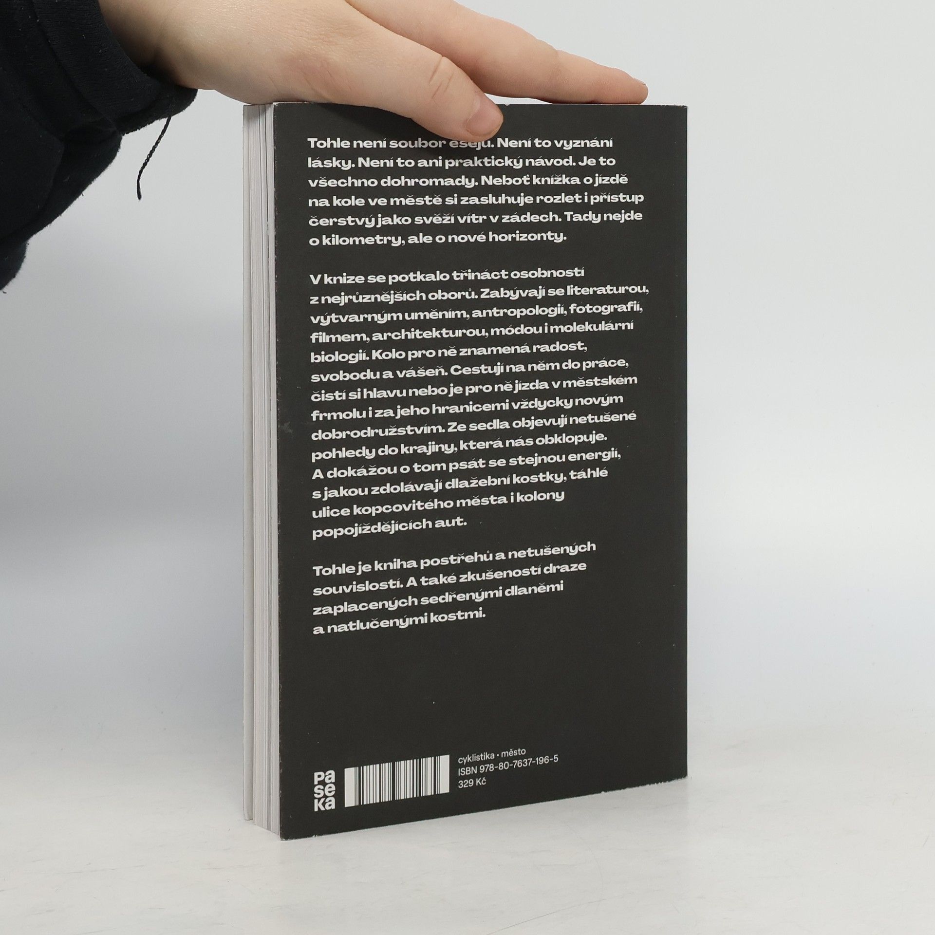 Tohle není soubor esejů. Není to vyznání lásky. Není to ani praktický návod. Je to všechno dohromady. Neboť knížka o jízdě na kole ve městě si zasluhuje rozlet i přístup čerstvý jako svěží vítr v zádech. Tady nejde o kilometry, ale nové horizonty. V týmu se potkalo dvanáct osobností z nejrůznějších oborů. Zabývají se literaturou, výtvarným uměním, sociologií, filmem, architekturou, módou i molekulární biologií. Kolo pro ně znamená radost, svobodu a vášeň. Cestují na něm do práce, čistí si hlavu nebo je pro ně jízda v městském frmolu i za jeho hranicemi vždycky novým dobrodružstvím. Ze sedla objevují netušené pohledy do krajiny, která nás obklopuje. A dokážou o tom psát se stejnou energií, s jakou zdolávají dlažební kostky, táhlé ulice do kopce i kolony popojíždějících aut. Tohle je kniha postřehů a netušených souvislostí. A také zkušeností draze zaplacených sedřenými dlaněmi a natlučenými kostmi.