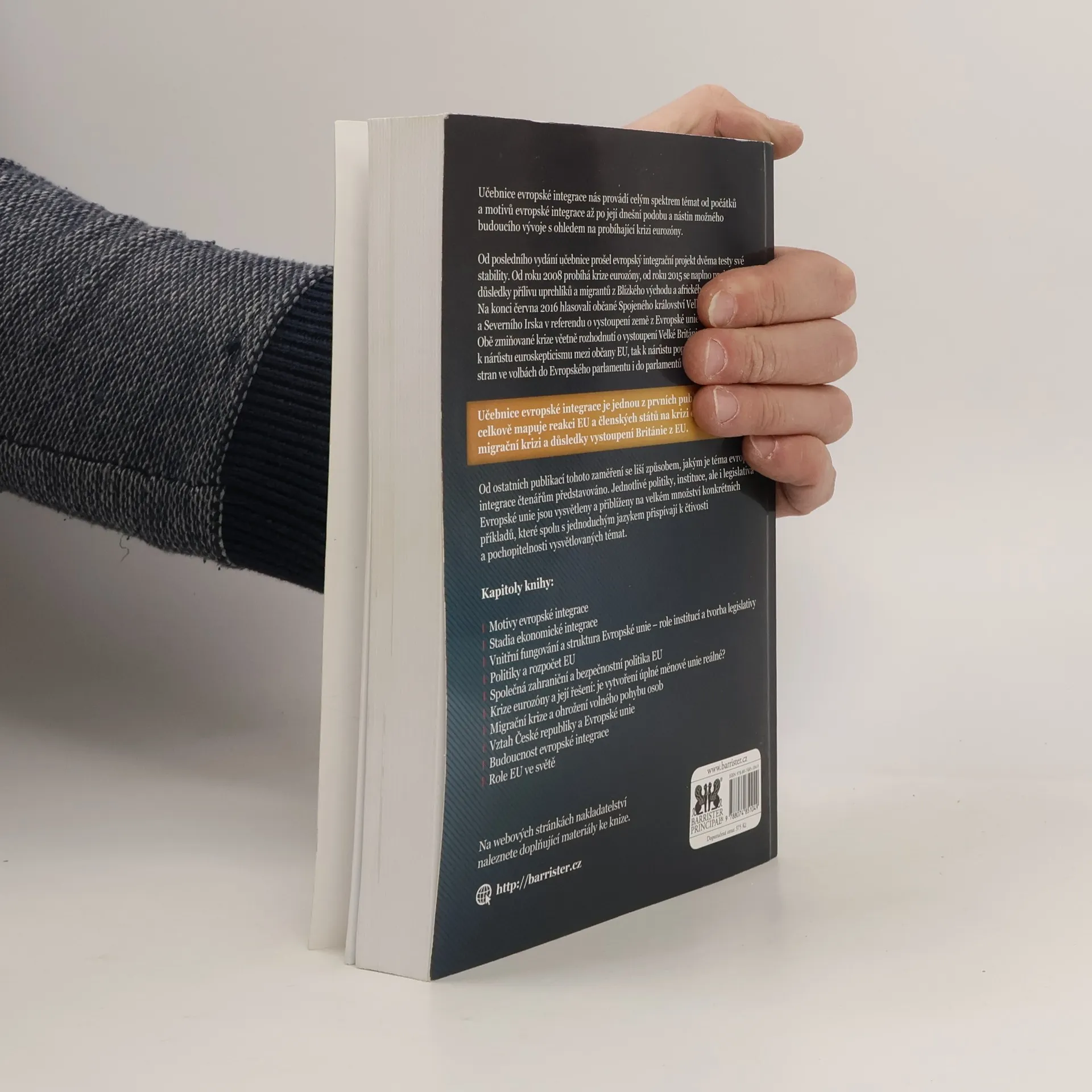 Učebnice evropské integrace pokrývá široké spektrum témat od počátků evropské integrace po její současnou podobu a možné budoucí vývoje, zejména v kontextu krize eurozóny. Od posledního vydání se projekt evropské integrace potýká s dvěma zásadními krizemi: od roku 2008 s krizí eurozóny a od roku 2015 s migrační krizí způsobenou přílivem uprchlíků z Blízkého východu a Afriky. Klíčovým momentem bylo referendum v červnu 2016, kdy občané Spojeného království hlasovali pro vystoupení z EU, což vedlo k nárůstu euroskepticismu a podpoře euroskeptických stran. Tato učebnice je jednou z prvních, která komplexně analyzuje reakce EU a členských států na tyto krize. Odlišuje se od jiných publikací tím, že přibližuje evropskou integraci prostřednictvím konkrétních příkladů a srozumitelného jazyka, což zvyšuje čtivost a pochopitelnost témat. Eurooptimisté, eurorealisté i euroskeptici by měli své názory zakládat na dobré znalosti fungování EU, aby mohli relevantně posoudit současný stav a zapojit se do diskuse o budoucnosti EU a role ČR v tomto integračním uskupení. Kapitoly zahrnují motivy integrace, ekonomickou integraci, strukturu EU, politiky a rozpočet, zahraniční a bezpečnostní politiku, krizi eurozóny, migrační krizi, vztah ČR a EU, budoucnost integrace a postavení EU ve světě.
