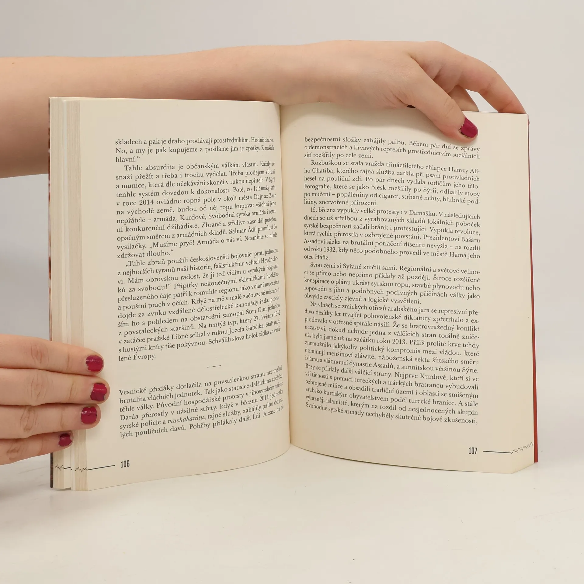 Za oponou války je prvotina z pera válečného reportéra a zpravodaje České televize na Blízkém východě. Jakub Szántó v knize přibližuje své dramatické zážitky z frontových linií, míst teroristických útoků i státních převratů a revolucí, které během své kariéry televizního novináře v uplynulých dvou dekádách natáčel. Barvitým jazykem zprostředkovává pozadí dějinných událostí pohledem očitého svědka. Zároveň poodhaluje a demýtizuje práci žurnalistů uprostřed pohnutých situací a nepředvídatelného vývoje. Vedle strhujícího vyprávění, které jako vystudovaný historik zasazuje do širšího dějinného kontextu, kniha dává nahlédnout i do niterných vztahů autora k rodině, novinářským kolegům i přátelům napříč Orientem. To vše balí do lehce sarkastického a sebeironického tónu, který odhaluje, nakolik je humor klíčovou ingrediencí pro práci i přežití v situacích, ze kterých normální člověk raději prchá. Knihu doprovází bohatá obrazová příloha autorových fotografií z terénu.