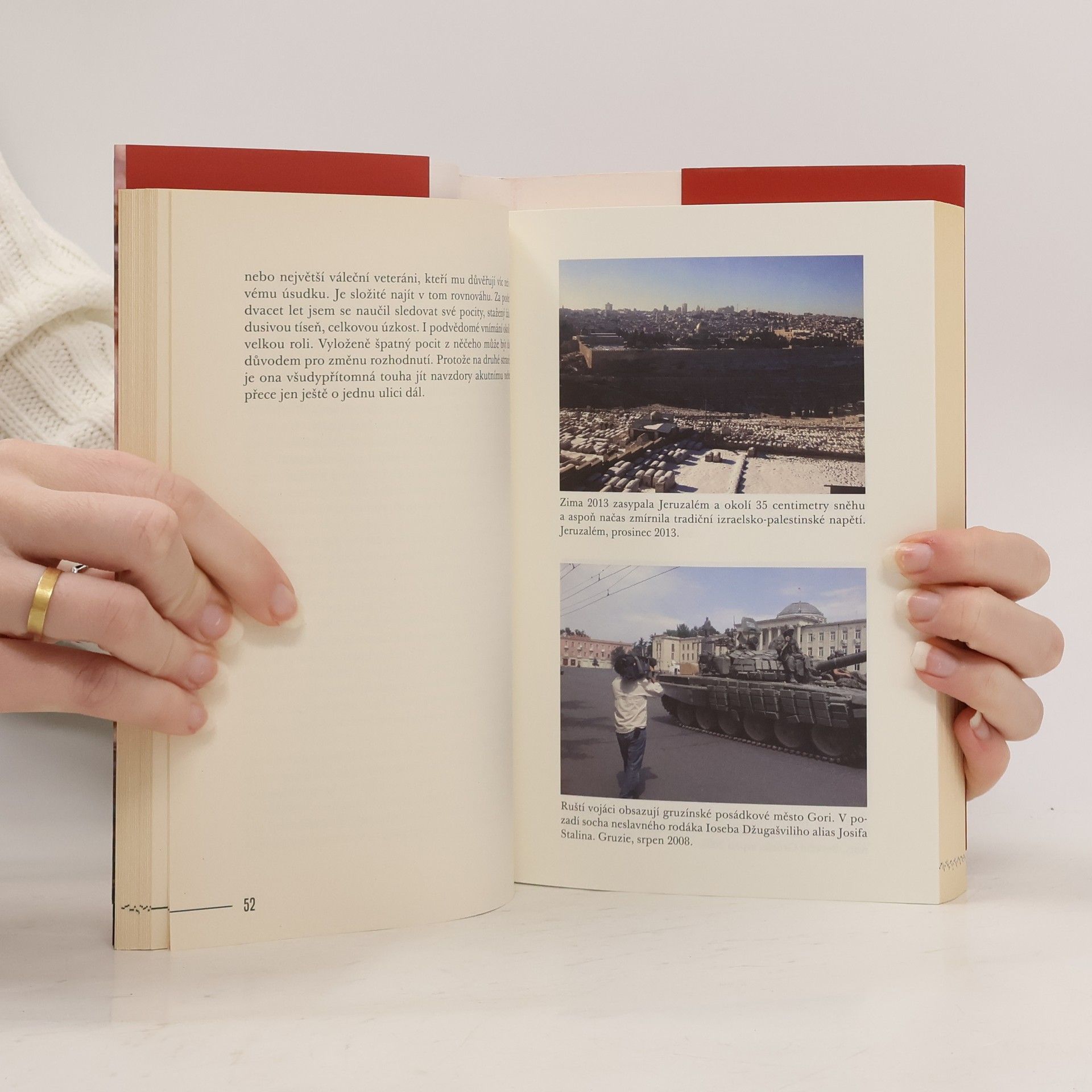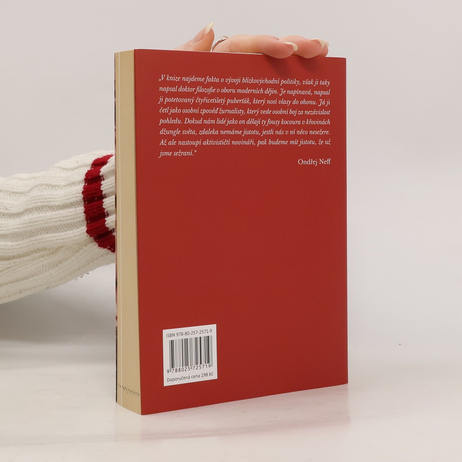 Za oponou války je prvotina z pera válečného reportéra a zpravodaje České televize na Blízkém východě. Jakub Szántó v knize přibližuje své dramatické zážitky z frontových linií, míst teroristických útoků i státních převratů a revolucí, které během své kariéry televizního novináře v uplynulých dvou dekádách natáčel. Barvitým jazykem zprostředkovává pozadí dějinných událostí pohledem očitého svědka. Zároveň poodhaluje a demýtizuje práci žurnalistů uprostřed pohnutých situací a nepředvídatelného vývoje. Vedle strhujícího vyprávění, které jako vystudovaný historik zasazuje do širšího dějinného kontextu, kniha dává nahlédnout i do niterných vztahů autora k rodině, novinářským kolegům i přátelům napříč Orientem. To vše balí do lehce sarkastického a sebeironického tónu, který odhaluje, nakolik je humor klíčovou ingrediencí pro práci i přežití v situacích, ze kterých normální člověk raději prchá. Knihu doprovází bohatá obrazová příloha autorových fotografií z terénu.
