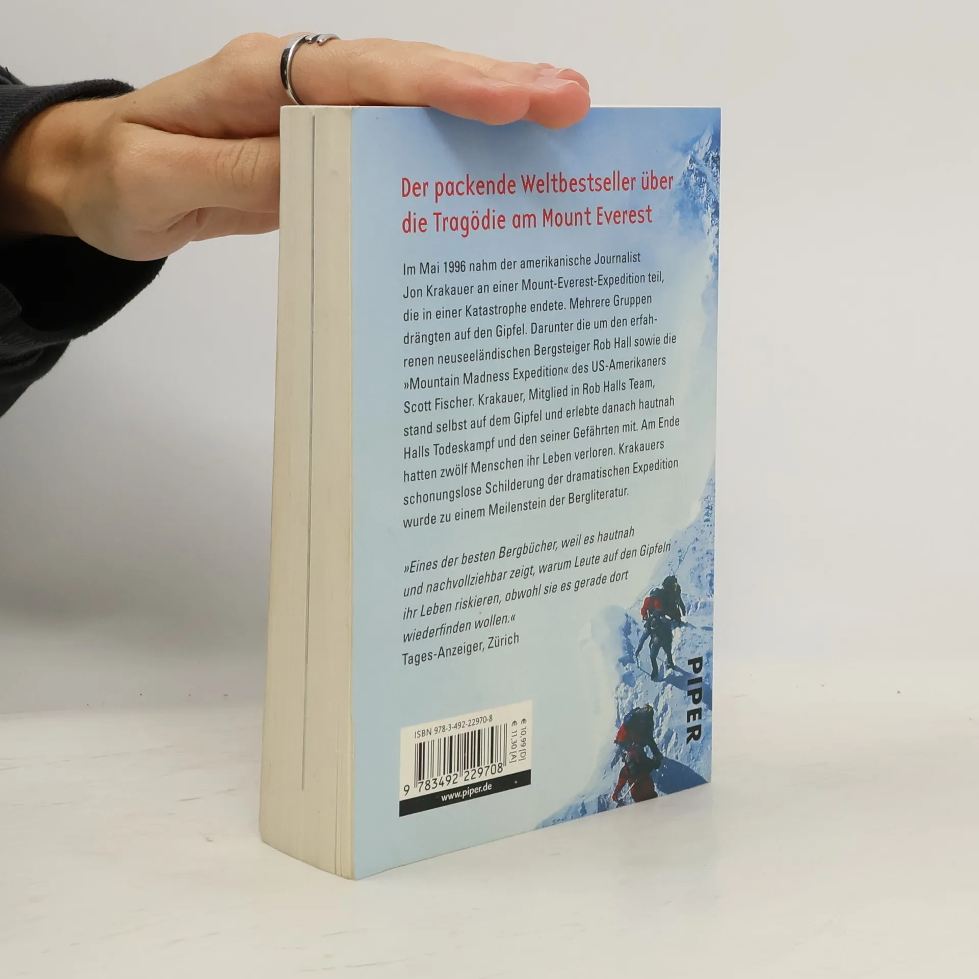 Der packende Weltbestseller über die Tragödie am Mount Everest Im Mai 1996 nahm der amerikanische Journalist Jon Krakauer an einer Mount-Everest-Expedition teil. Das Unternehmen endete in einer Katastrophe, fünf von Krakauers Kameraden kamen auf tragische Weise in einem peitschenden Schneesturm ums Leben, er selbst konnte sich mit letzter Kraft in Sicherheit bringen. Am Ende hatten zwölf Menschen ihr Leben verloren. Minutiös und eindrucksvoll schildert Krakauer den dramatischen Verlauf der Expedition. Er äußert sich kritisch über die Auswüchse des modernen Alpinismus mit seinen oft tödlichen Folgen, vermittelt aber zugleich einen Eindruck von der magischen Anziehungskraft und der Faszination des Bergsteigens.