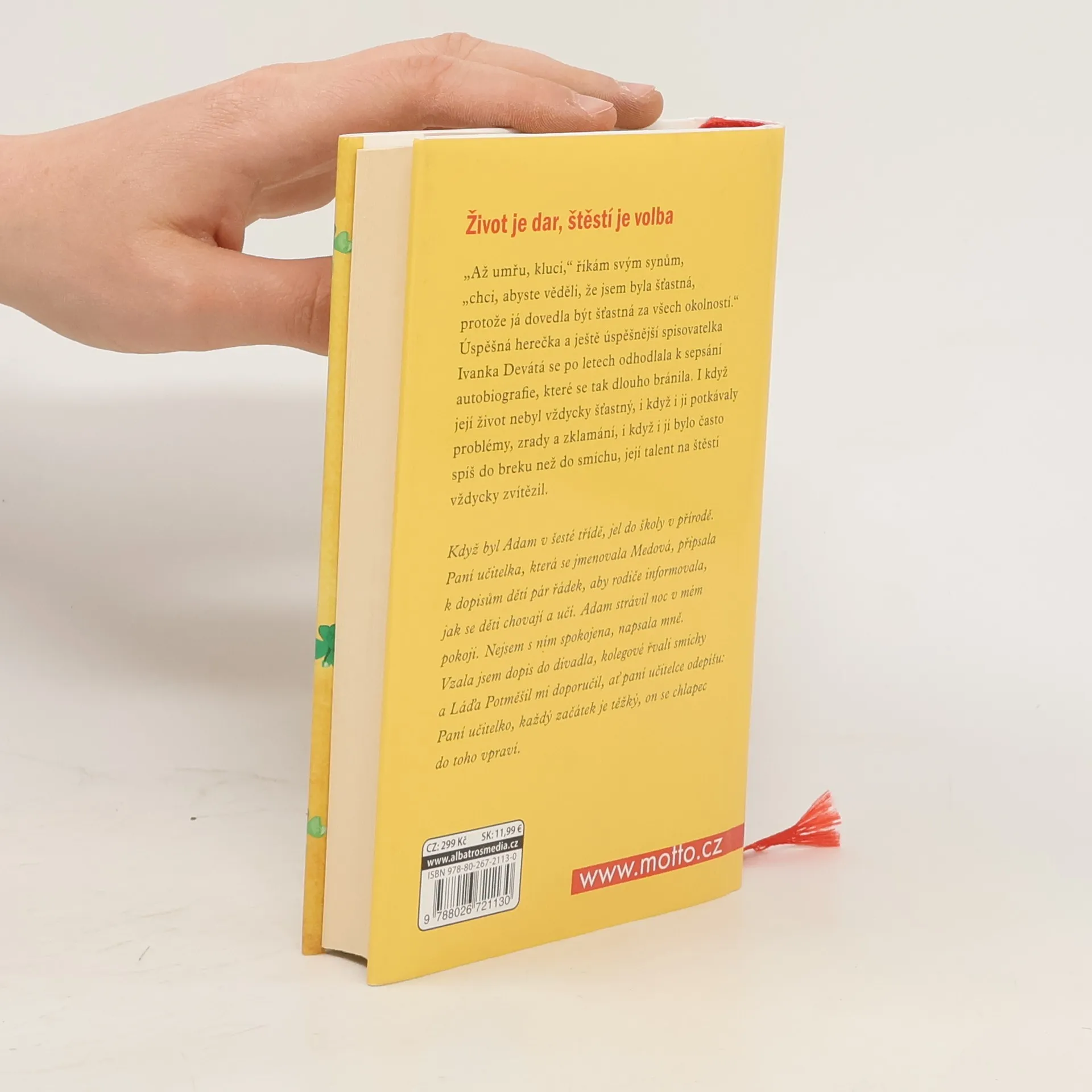 „Až umřu, kluci,“ říkám svým synům, „chci, abyste věděli, že jsem byla šťastná, protože já dovedla být šťastná za všech okolností.“ Úspěšná herečka a ještě úspěšnější spisovatelka Ivanka Devátá se po letech odhodlala k sepsání autobiografie, které se tak dlouho bránila. I když její život nebyl vždycky šťastný, i když i ji potkávaly problémy, zrady a zklamání, i když i jí bylo často spíš k slzám než k radosti, její talent na štěstí vždycky zvítězil.