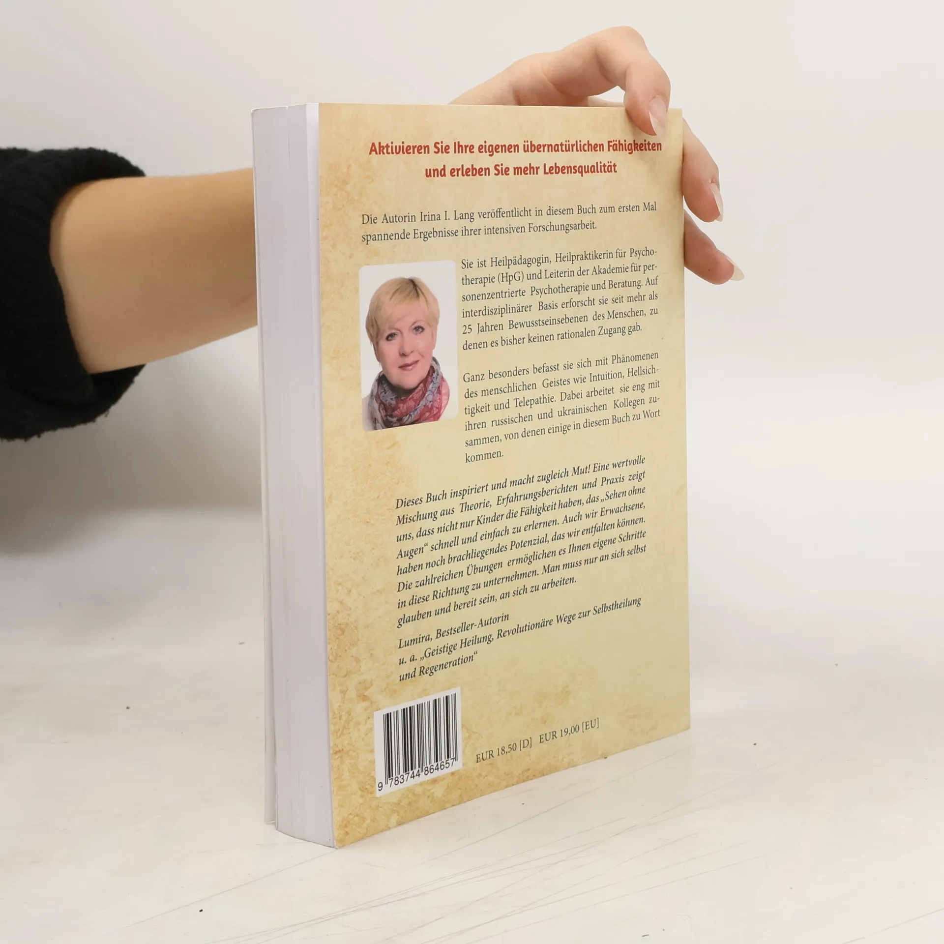 Aktivieren Sie Ihre eigenen übernatürlichen Fähigkeiten und erleben Sie mehr Lebensqualität. Die Autorin Irina I. Lang veröffentlicht in diesem Buch zum ersten Mal spannende Ergebnisse ihrer intensiven Forschungsarbeit. Sie ist Heilpädagogin und Heilpraktikerin für Psychotherapie (HpG) und Leiterin der Akademie für personenzentrierte Psychotherapie und Beratung. Auf interdisziplinärer Basis erforscht sie seit mehr als 25 Jahren Bewusstseinsebenen des Menschen, zu denen es bisher keinen rationalen Zugang gab. Ganz besonders befasst sie sich mit Phänomenen des menschlichen Geistes wie Intuition, Hellsichtigkeit und Telepathie. Dabei arbeitet sie eng mit ihren russischen und ukrainischen Kollegen zusammen, von denen einige in diesem Buch zum Wort kommen. "Dieses Buch inspiriert und macht zugleich Mut! Eine wertvolle Mischung aus Theorie, Erfahrungsberichten und Praxis zeigt uns, dass nicht nur Kinder die Fähigkeit haben, das 'Sehen ohne Augen' schnell und einfach zu erlernen. Auch wir, Erwachsene, haben noch brachliegendes Potenzial, das wir entfalten können. Die zahlreichen Übungen ermöglichen es Ihnen, eigene Schritte in diese Richtung zu unternehmen. Man muss nur an sich selbst glauben und bereit sein, an sich zu arbeiten." Lumira, Bestseller-Autorin u.a. "Geistige Heilung, Revolutionäre Wege zur Selbstheilung und Regeneration"