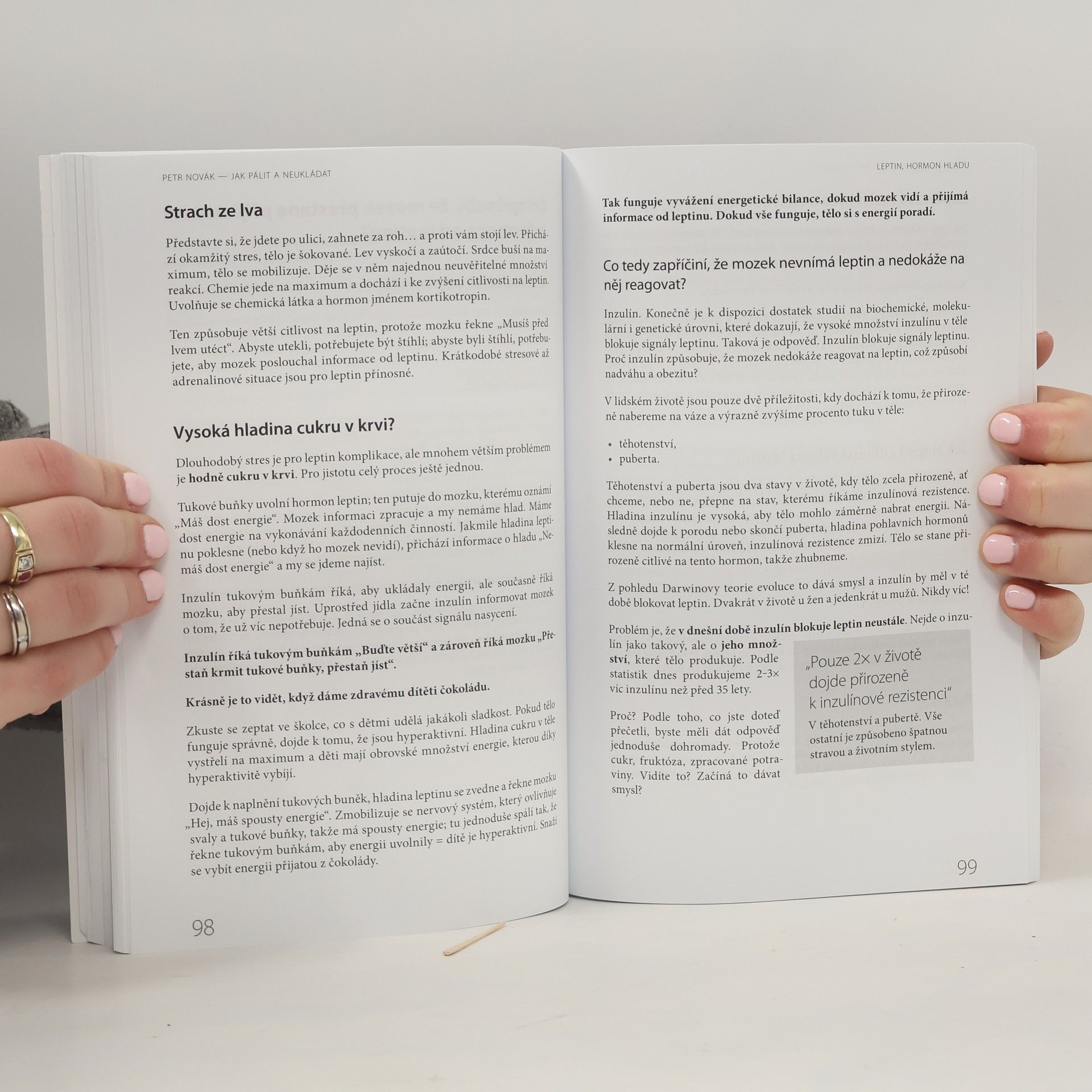 Autor knihy? Petr Novák, jméno mé. Bylo mi 30, funěl jsem při zavazování tkaniček, chodil po doktorech s prvními zdravotními problémy z nadváhy. Kolem sebe jsem přitom viděl lidi, kteří byli v 50 či 60 letech úplně fit. Začal jsem se proto zajímat o stravu a její dopady na tělo a postupně tomu úplně propadl. Při pročítání vědeckých článků jsem totiž zjistil, že většina toho, co kolem sebe běžně o hubnutí slyšíme, funguje přesně naopak a najednou díky tomu zhubl 24 kilo za 4 měsíce. Nashromážděné informace jsem si nechtěl nechat pro sebe. Vytvořil jsem tedy na naučmese.cz kurz o pálení tuků a s nadšením sledoval, jak jím procházejí desítky lidí, kterým mění život. Termíny však byly pravidelně vyprodané a já neměl kapacitu přidávat další. Sepsal jsem proto všechno, co jsem zjistil o pohybu, stravě i stresu, na papír a vydal tuto knihu.