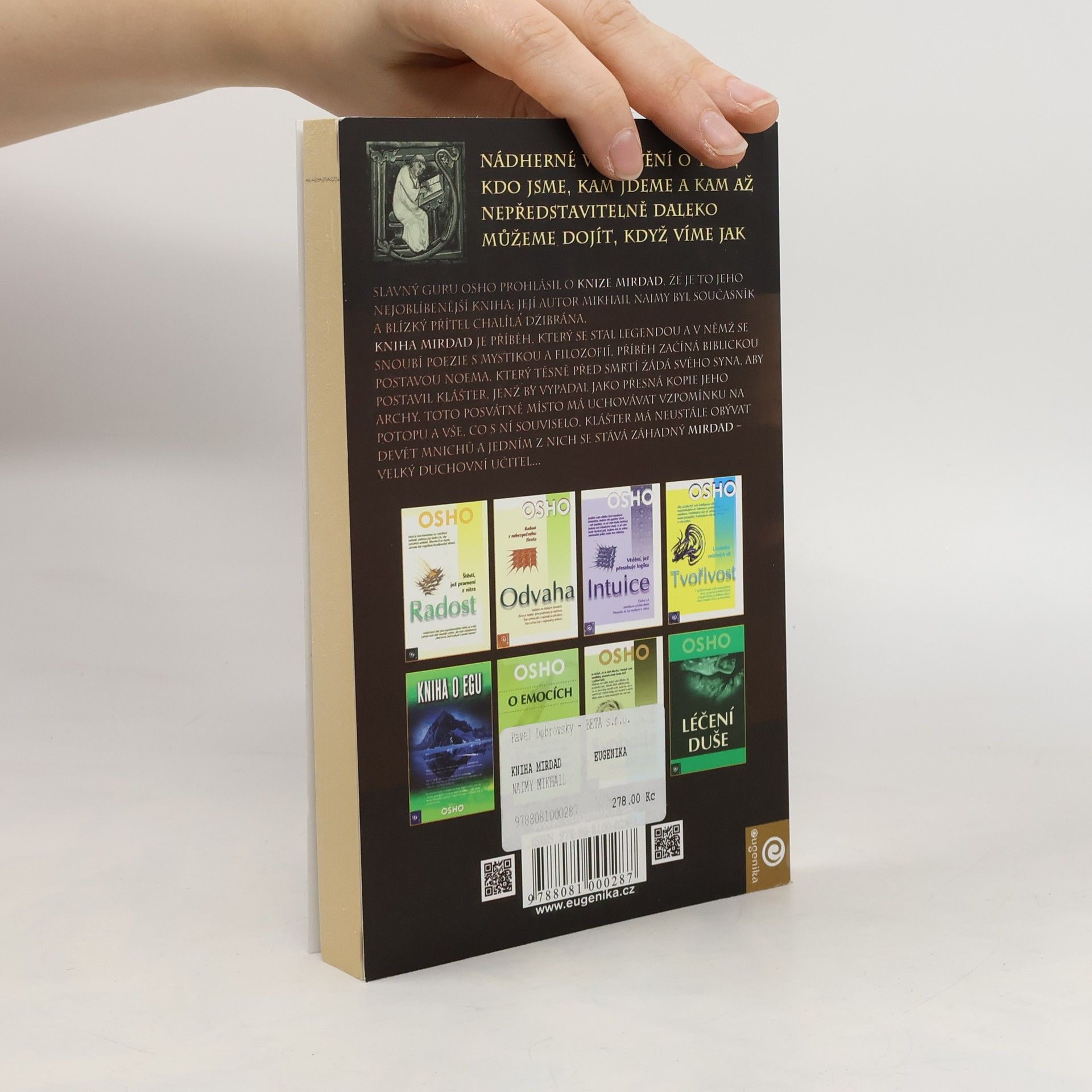 Kniha Mirdad je příběh, který se stal legendou a v němž se snoubí poezie s mystikou a filozofií. Nádherné vyprávění o tom, kdo jsme, kam jdeme a kam až daleko můžeme dojít, když víme jak. Toto je kniha, kterou slavný guru Osho prohlašoval za svoji nejoblíbenější. Její autor byl současně i blízkym přítelem velkého básnika Chalíla Džibrána. Příběh knihy začíná biblickou postavou Noema, který těsně před svou smrtí žádá svého syna, aby postavil klášter, který by vypadal jako přesná kopie jeho archy. Toto posvátné místo má uchovávat vzpomínku na potopu a vše, co s ní souviselo. Klášter má stále obývat devět mnichů a jedním z nich se stává záhadný Mirdad - velký duchovní učitel...