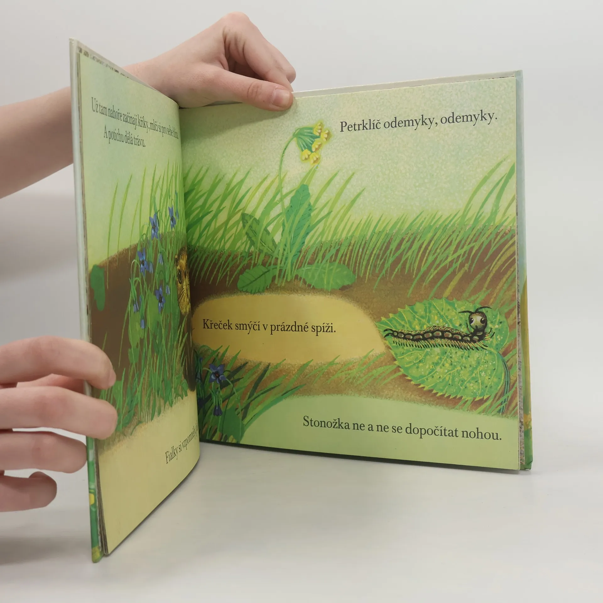 Text a ilustrace přibližují dětem jarní přírodu od prvních květin až po návrat čápa do hnízda.