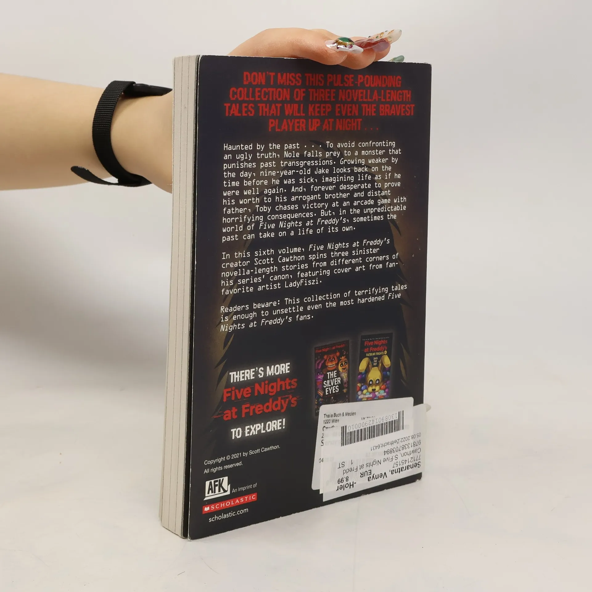 To avoid confronting an ugly truth, Nole falls prey to a monster that punishes past transgressions. Growing weaker by the day, nine-year-old Jake looks back on the time before he was sick, imagining life as if he were well again. And, forever desperate to prove his worth to his arrogant brother and distant father, Toby chases victory at an arcade game with horrifying consequences. But in the unpredictable world of Five Nights at Freddy's, sometimes the past can take on a life of its own.