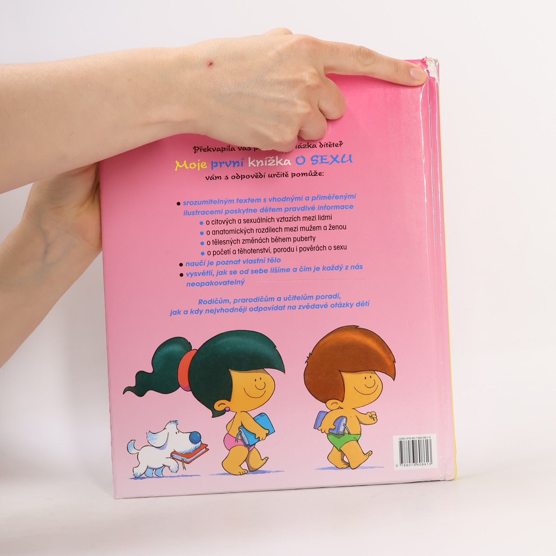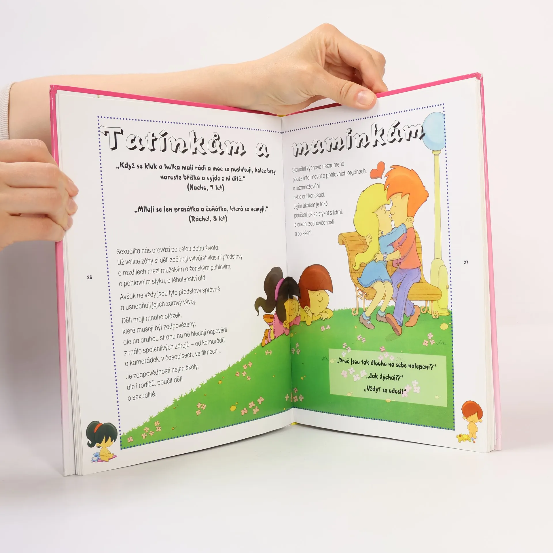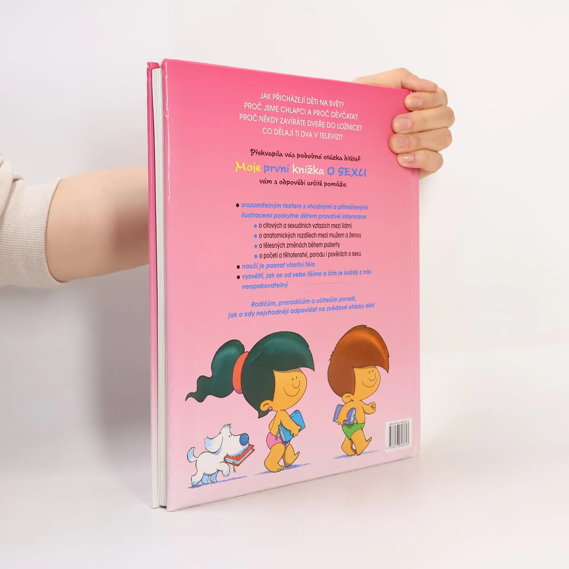 Jak přicházejí děti na svět? Proč jsme chlapci a proč děvčata? Proč někdy zavíráte dveře do ložnice? Co dělají ti dva v televizi? Překvapila vás podobná otázka dítěte? Moje první knížka o sexu vám s odpovědmi určitě pomůže: Srozumitelným textem s vhodnými a přiměřenými ilustracemi poskytne dětem pravdivé informace o citových sexuálních vztazích mezi lidmi, o anatomických rozdílech mezi mužem a ženou, o tělesných změnách během puberty, o početí a těhotenství, porodu i pověrách o sexu. Naučí je poznat vlastní tělo. Vysvětlí, jak se od sebe lišíme a čím je každý z nás neopakovatelný. Rodičům, prarodičům a učitelům poradí, lak a kdy nejvhodněji odpovídat na zvědavé otázky dětí.