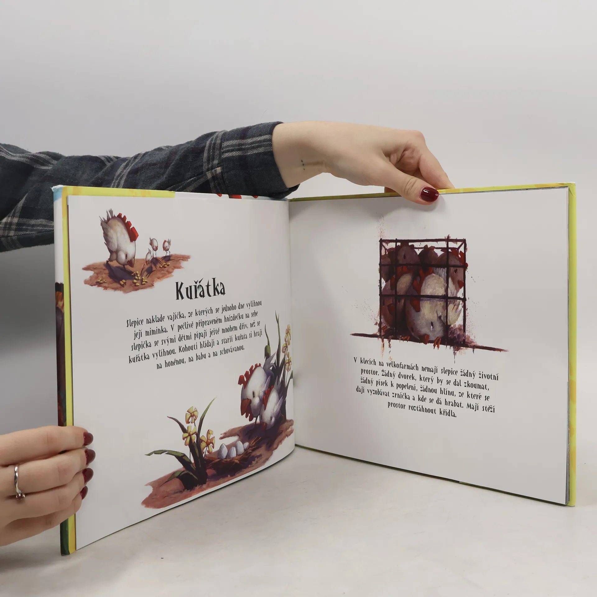 Knižka pre najmladších čitateľov (vhodná najmä pre deti od 6 do 10 rokov), ktorá obsahuje rozkošné zastúpenie zvieracieho osadenstva: prasiatok, moriek, kráv, prepeličiek, korytnačiek a delfínov. Využitím krásnych obrázkov a veselého textu sú ukázané dve stránky týchto bytostí; ich prirodzené správanie sa, ako preskúmavanie svojho okolia, spoločné hranie sa, maznanie sa, čistenie sa navzájom a predvádzanie sa svojimi vrodenými inštinktmi a rituálmi; a z druhej, odvrátenej stránky, sú ukázané ich hrozné podmienky, v ktorých žijú na veľkochovných farmách. Knižka tiež popisuje negatívne dopady konzumácie mäsa na životné prostredie, a posledná časť ponúka cesty, cez ktoré sa deti môžu dozvedieť viac o vegetariánstve a vegánskom životnom štýle.