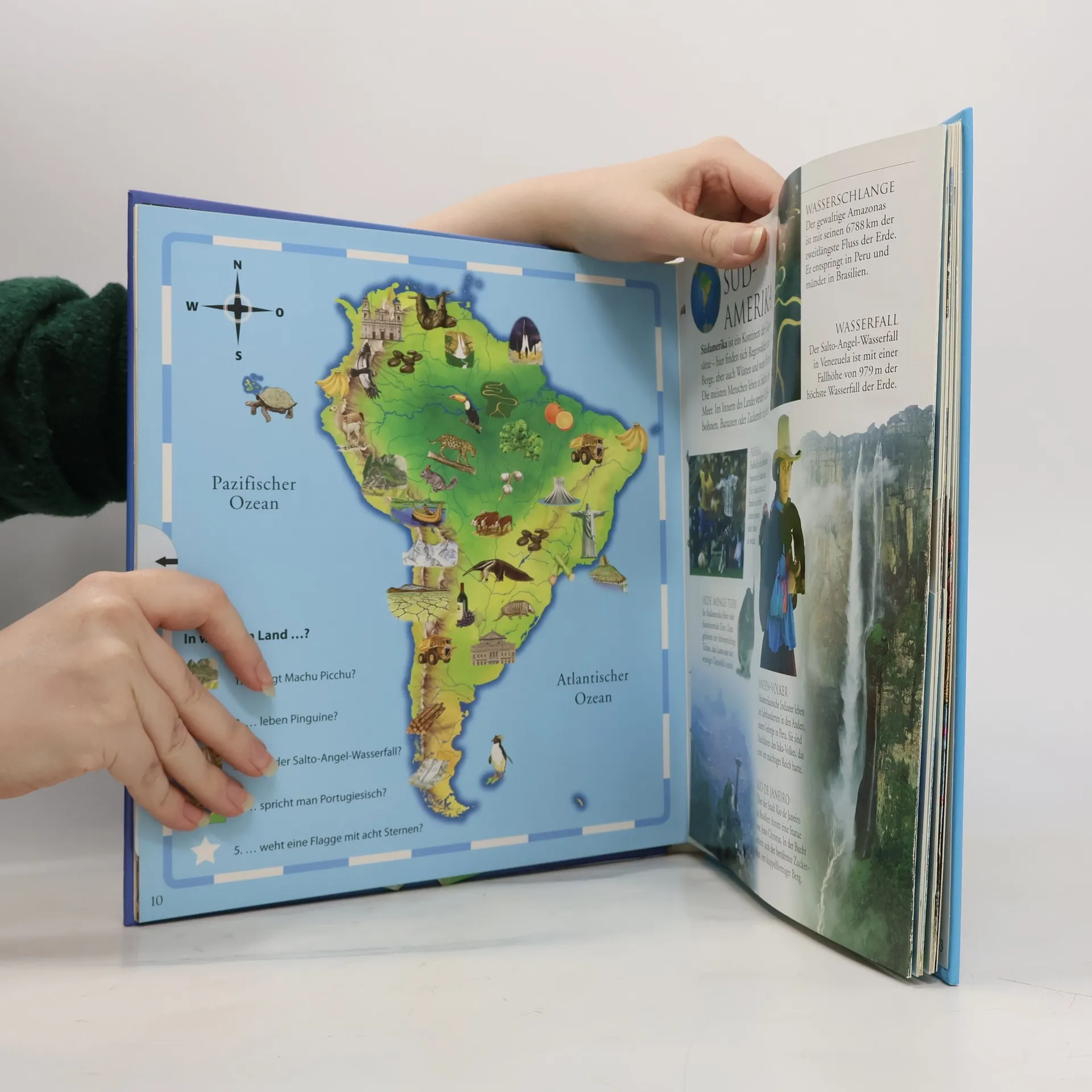 Der perfekte erste Atlas für kleine Globetrotter! Hier schnuppern Kinder Reiseluft und lernen spielerisch die bunte Welt mit all ihren faszinierenden Menschen, Pflanzen und Tieren kennen. Begeben Sie sich mit Ihren Kindern auf eine spannende Reise rund um den Globus! Von der gigantischen Freiheitsstatue in New York über atemberaubende Wasserfälle in Venezuela bis zu den mystischen Polarlichtern in der Antarktis - kreativ gestaltete Pop-up Elemente und spektakuläre Grafiken lassen die schönsten Plätze der Erde lebendig werden. Für besonders große Augen sorgt ein beeindruckender Pop-up Globus. Wohin soll die Reise als nächstes gehen? In kurzen informativen Texten zum gemeinsamen Lesen oder Vorlesen erfahren kleine Entdecker Wissenswertes über Kultur, Menschen und Natur. In kniffligen Quizfragen können sie schließlich ihr Weltwissen testen. Ein unterhaltsamer Ratespaß für die ganze Familie!