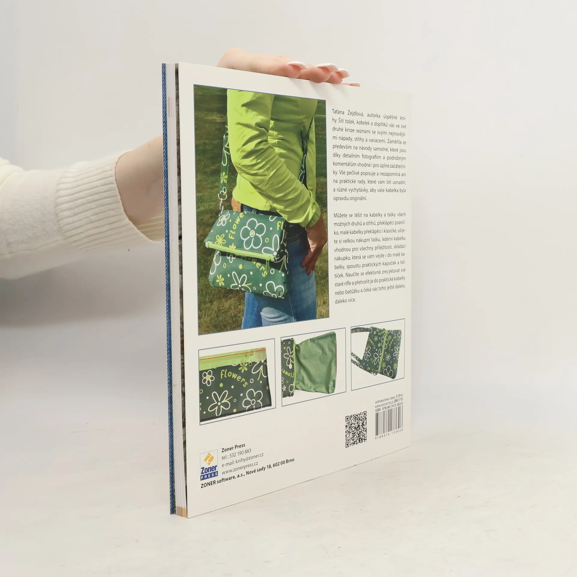 Když kabelku, tak originál! Protože vás šití baví a nás také, je tu další díl úspěšného Šití tašek, kabelek a doplňků krok za krokem od Taťany Žejdlové. Autorka vás ve své druhé knize seznámí se svými nejnovějšími nápady, střihy a variacemi. Zaměřila se především na návody samotné, které jsou díky detailním fotografiím a podrobným komentářům vhodné i pro úplné začátečníky. Vše pečlivě popisuje a nezapomíná ani na praktické rady, které vám šití usnadní, a různé vychytávky, aby vaše kabelka byla opravdu originální. TIP: Přečtěte si rozhovor s Taťanou Žejdlovou. Můžete se těšit na kabelky a tašky všech možných druhů a střihů, překlápěcí psaníčko, malé kabelky překlápěcí i klasické, ušijete si velkou nákupní tašku, ležérní kabelku vhodnou pro všechny příležitosti, skládací nákupku, která se vám vejde i do malé kabelky, naučíte se efektivně zrecyklovat své staré rifle a přetvořit je do praktické kabelky nebo batůžku, různé odstřižky a zbytky látek využijete na ušití spousty praktických kapsiček a taštiček a čeká vás toho ještě daleko, daleko více.