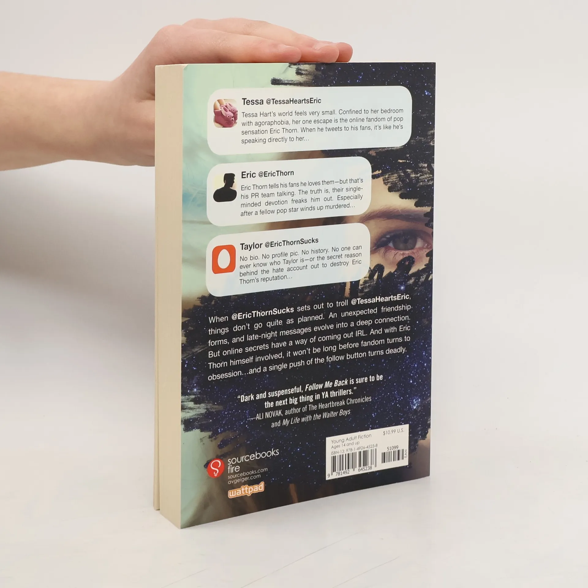 Told through police transcripts, tweets, direct messages, and two voices, pop sensation Eric inadvertently falls in love with his biggest fan, agoraphobic Tessa, through deception, leading to a real-life meeting with dire consequences.