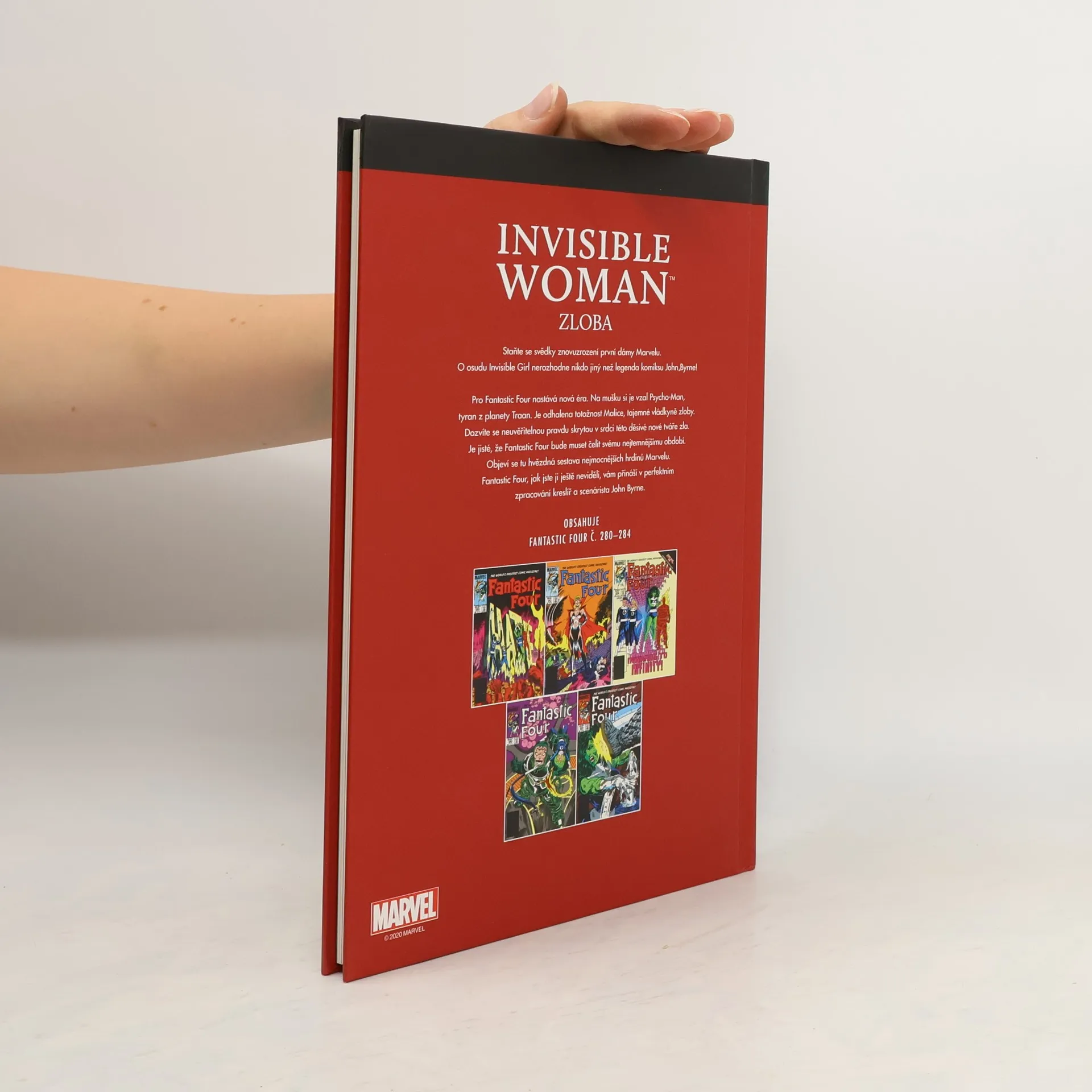 Staňte se svědky znovuzrození první dámy Marvelu. O osudu Invisible Girl nerozhodne nikdo jiný než legenda komiksu John Byrne! Pro Fantastic Four nastává nová éra. Na mušku si je vzal Psycho-Man, tyran z planety Traan. Je odhalena totožnost Malice, tajemné vládkyně zloby. Dozvíte se neuvěřitelnou pravdu skrytou v srdci této děsivé nové tváře zla. Je jisté, že Fantastic Fourbude muset čelit svému nejtemnějšímu období. Objeví se tu hvězdná sestava nejmocnějších hrdinů Marvelu. Fantastic Four, jak jste ji ještě neviděli, vám přináší v perfektním zpracování kreslíř a scenárista John Byrne. Obsahuje Fantastic Four č. 280-284.