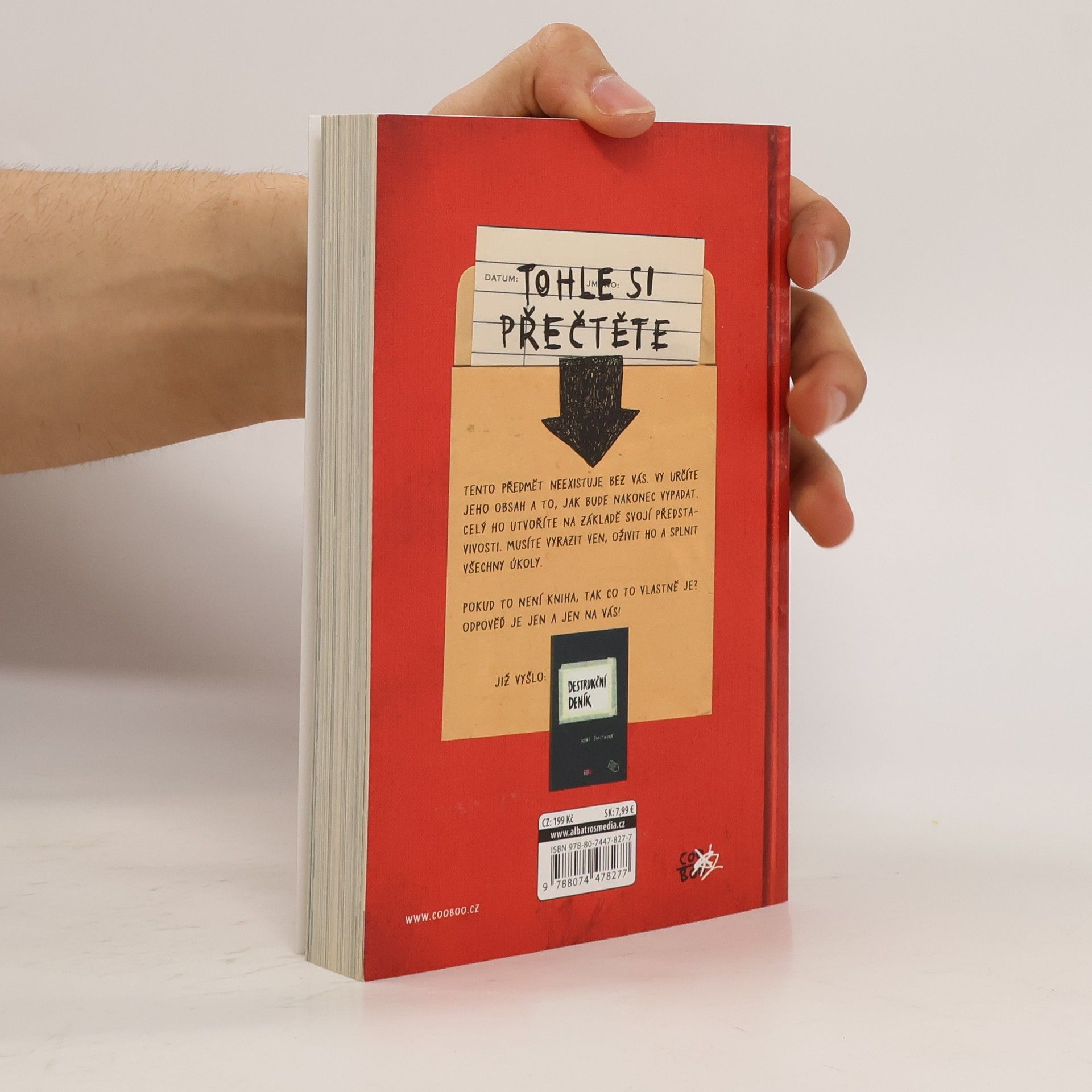 Chystá se na vás další dávka destrukce! Totiž pardon, tvoření… Jste zvědaví, čím vším může kniha být? Keri Smithová vás to na stránkách téhle knihy, co není kniha, nechá mnohokrát přehodnotit! Ale když to není kniha, co to tedy je? To je jen a jen na vás ;)