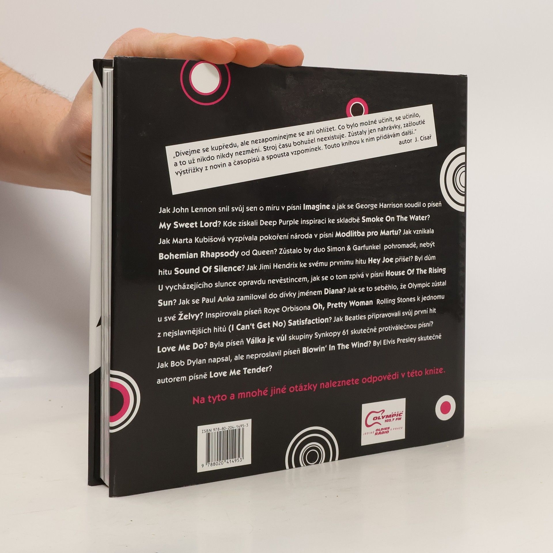 Publikace vypráví o vzniku 40 slavných písní ze světové i české domácí scény a popisuje zajímavé okolnosti, které provázely jejich cestu na výsluní. Čtenáři tu naleznou nejen první rock'n'roll Rock Around The Clock v podání Billa Haleyho a jeho skupiny Comets, baladu Love Me Tender Elvise Presleyho, první singl Beatles s písní Love Me Do, Dylanův slavný protestsong Blowing In The Wind, ale i Bohemian Rhapsody od Freddieho Mercuryho a Queen, Lennonovo Imagine, olympickou Želvu nebo tragické osudy, které provázely zrod Modlitby pro Martu v podání Marty Kubišové, ze které se stala hymna českého národa v době normalizace.