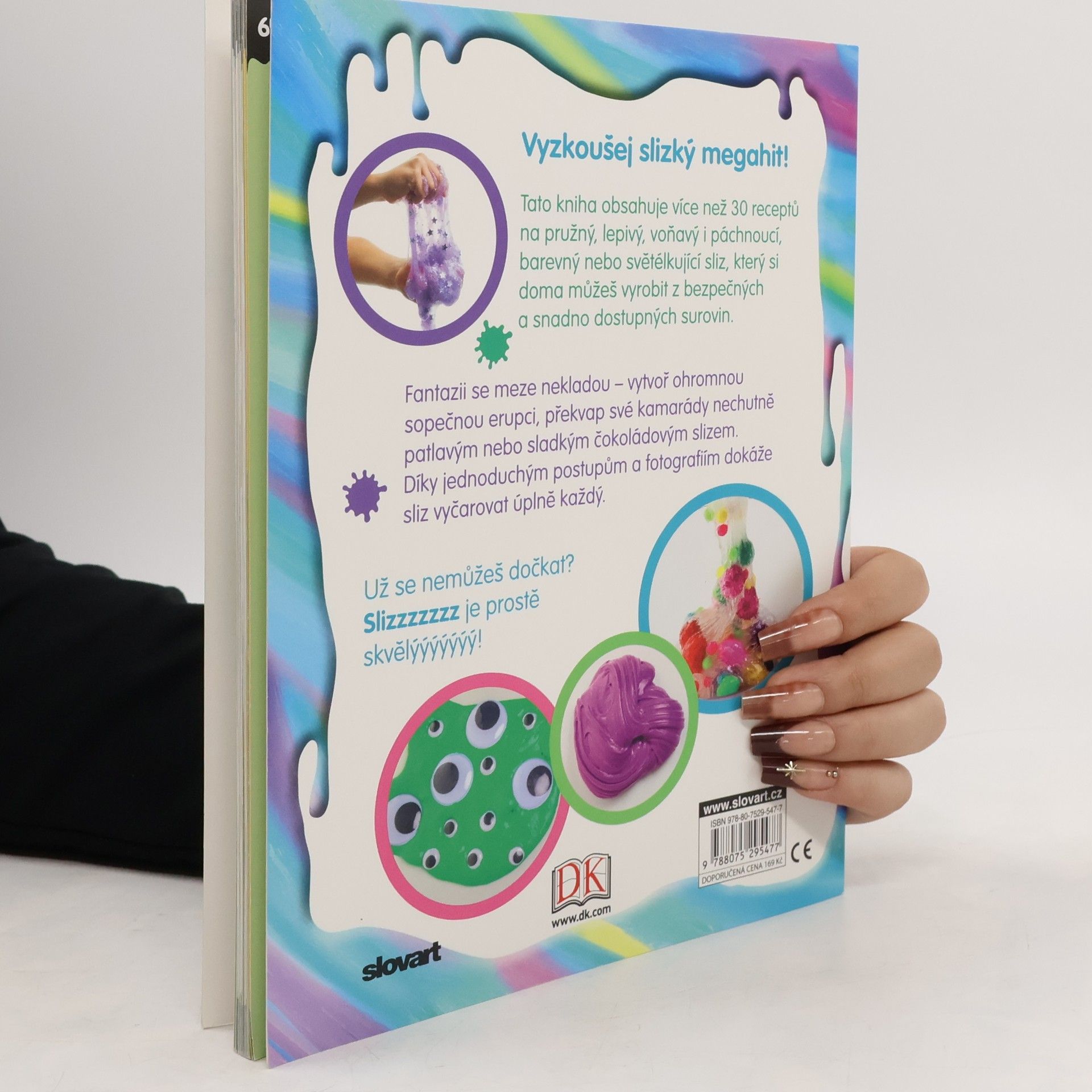 Tato kniha obsahuje více než 30 receptů na pružný, lepivý, voňavý i páchnoucí, barevný nebo světélkující sliz, který si doma může vyrobit každý, navíc z bezpečných a snadno dostupných surovin. Fantazii se meze nekladou – vytvořte ohromnou sopečnou erupci, překvapte své kamarády nechutně patlavým nebo sladkým čokoládovým slizem. Díky jednoduchým postupům a fotografiím dokáže sliz vyčarovat úplně každý.