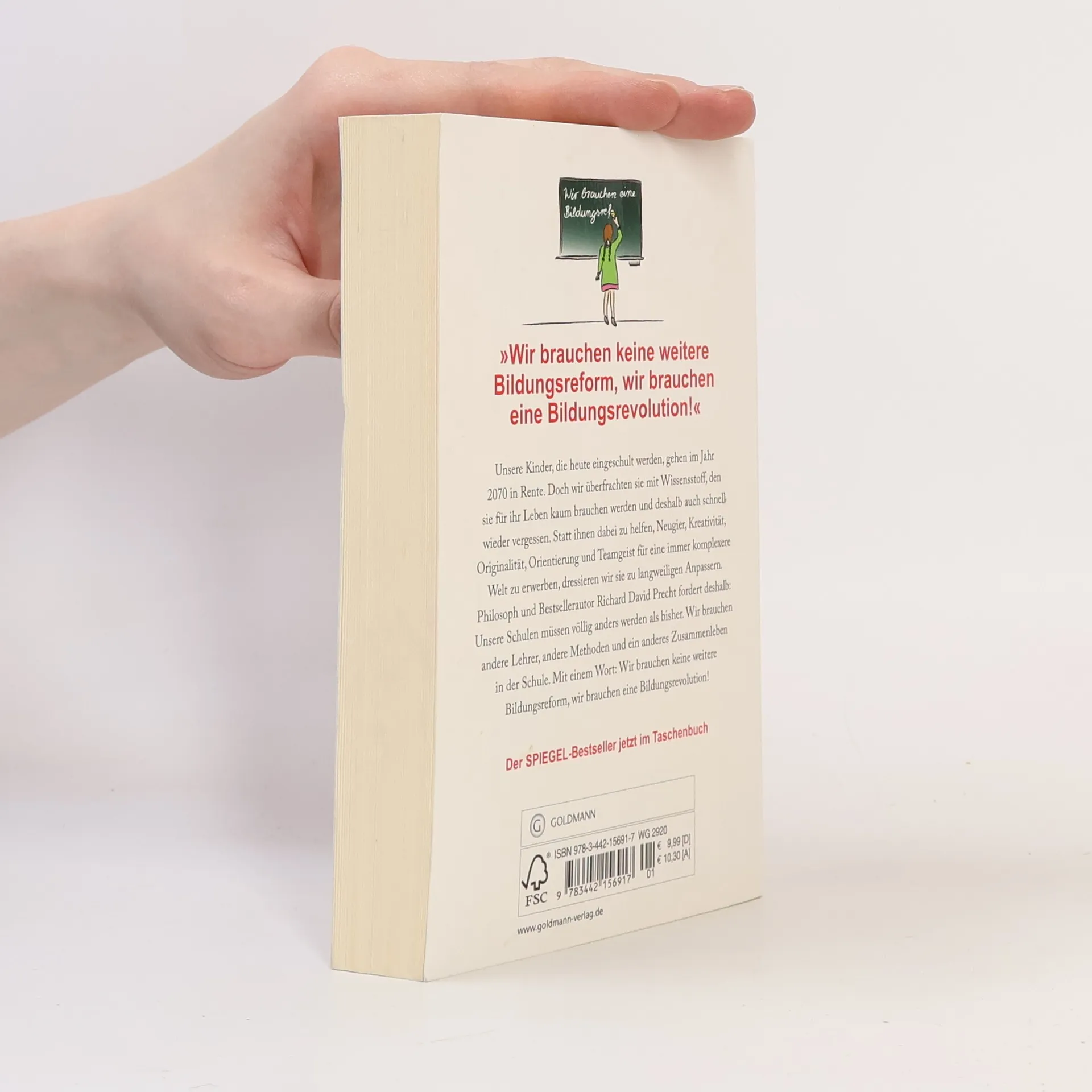 Der Verrat des Bildungssystems an unseren Kindern Unsere Kinder, die heute eingeschult werden, gehen im Jahr 2070 in Rente. Doch wir überfrachten sie mit Wissensstoff, den sie für ihr Leben kaum brauchen werden. Statt ihnen dabei zu helfen, Neugier, Kreativität, Originalität, Orientierung und Teamgeist für eine immer komplexere Welt zu erwerben, dressieren wir sie zu langweiligen Anpassern. Demgegenüber stehen die Erkenntnisse der modernen Entwicklungspsychologie, der Lerntheorie und der Hirnforschung, die an unseren Schulen bis heute kaum berücksichtigt werden. Denn nur was mit Neugier gelernt wird, wird unseren Kindern wichtig und bedeutsam. Und nur was ihnen bedeutsam ist, weckt ihre Kreativität und spornt die Leistungsbereitschaft an. Der Philosoph und Bestsellerautor Richard David Precht fordert: Unsere Schulen müssen völlig anders werden als bisher. Wir brauchen andere Lehrer, andere Methoden und ein anderes Zusammenleben in der Schule. Mit einem Wort: Wir brauchen keine weitere Bildungsreform, wir brauchen eine Bildungsrevolution!