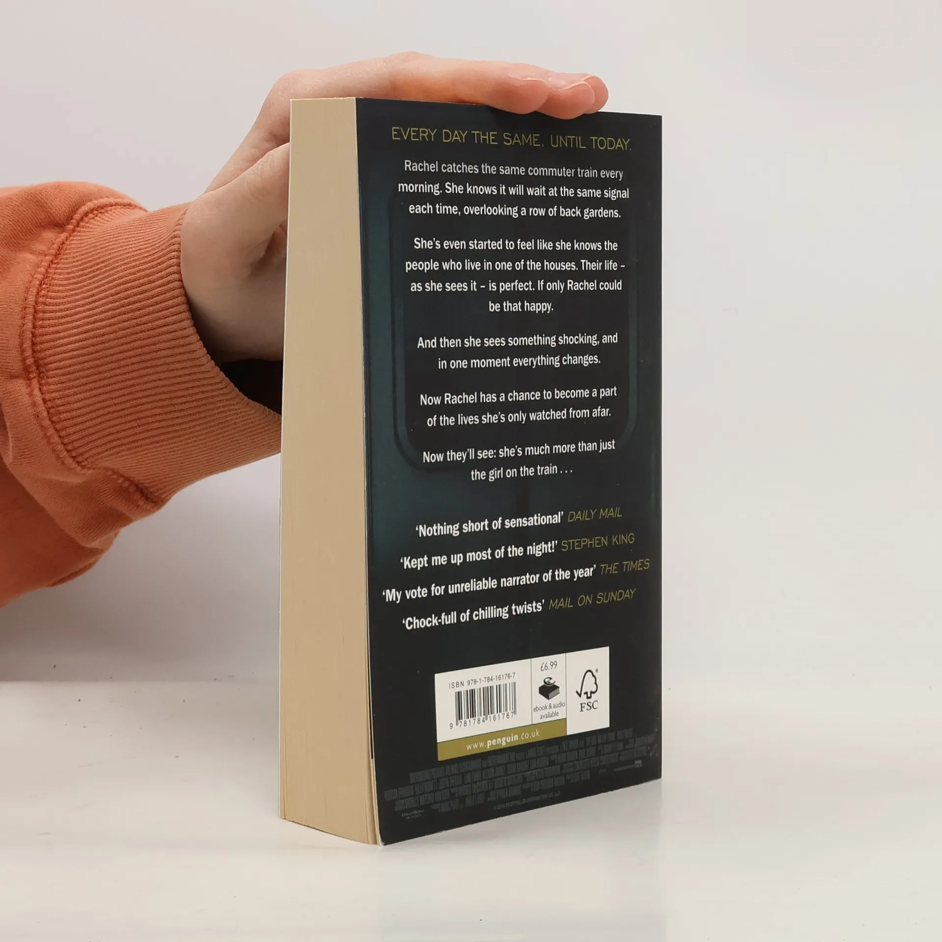 THE RUNAWAY SUNDAY TIMES NO.1 BESTSELLER AND THRILLER OF THE YEAR, NOW A MAJOR FILM STARRING EMILY BLUNT 'Really great suspense novel. Kept me up most of the night. The alcoholic narrator is dead perfect' STEPHEN KING Rachel catches the same commuter train every morning. She knows it will wait at the same signal each time, overlooking a row of back gardens. She's even started to feel like she knows the people who live in one of the houses. 'Jess and Jason', she calls them. Their life - as she sees it - is perfect. If only Rachel could be that happy. And then she sees something shocking. It's only a minute until the train moves on, but it's enough. Now everything's changed. Now Rachel has a chance to become a part of the lives she's only watched from afar. Now they'll see; she's much more than just the girl on the train...