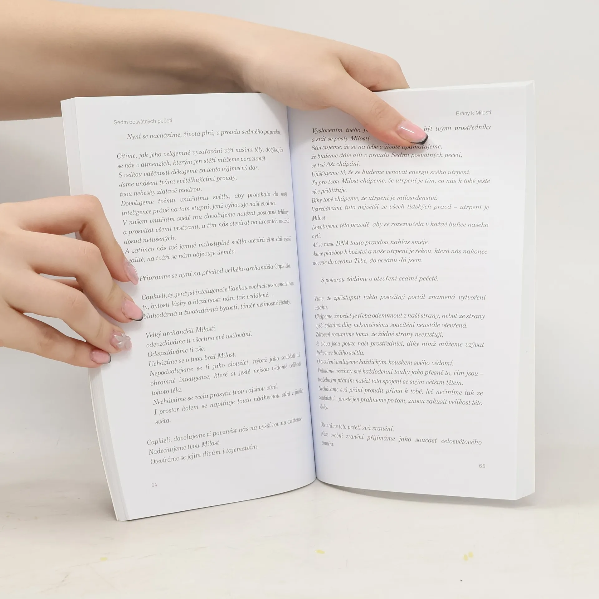 Velmi jemné a poetické dílo. Navazuje na transmisi genového klíče 22 a Venušinu sekvenci. Je jako sprcha Milosti – podporující, hladící, milující a všeobjímající. V těchto náročných časem nám může být velkou pomocí. Sedm posvátných pečetí popisuje konkrétní vzorce probuzení lidstva. Jedná se o vyšší proudy involuce a Milosti pohybující se v průběhu času celým lidským druhem. Alegorickým způsobem jsou popsány ve Zjevení svatého Jana, díky kterému lze otevírání sedmi pečetí chápat jako předurčený sekvenční kód probuzení zabudovaný do celé lidské DNA. Až bude každá ze sedmi pečetí mysticky „otevřena“, všechny aspekty lidského zranění, a to jak individuálního, tak kolektivního, budou jednou provždy vyléčeny. Učení sedmi pečetí je součástí transmise GK 22, jehož nejvyšším aspektem je Milost. Venušina sekvence nám může podat přesný obraz základních vzorců našeho utrpení. S tím, jak naše vědomí proniká hlouběji do stínových vzorců, uvědomujeme si fungování sedmi pečetí a jejich vliv na naše individuální probuzení. Na ještě hlubší úrovni si můžeme uvědomit, jak se sedm pečetí postupně otevírá v kolektivním těle lidstva. Takové vhledy vedou člověka k velkému vzepětí vnitřního soucitu a míru. Klíčovým faktorem pro porozumění učení Sedmi posvátných pečetí je uvědomění, že se jedná o velice vytříbenou frekvenční transmisi, kterou můžeme pochopit a v sobě aktivovat až po značné vnitřní očistě.