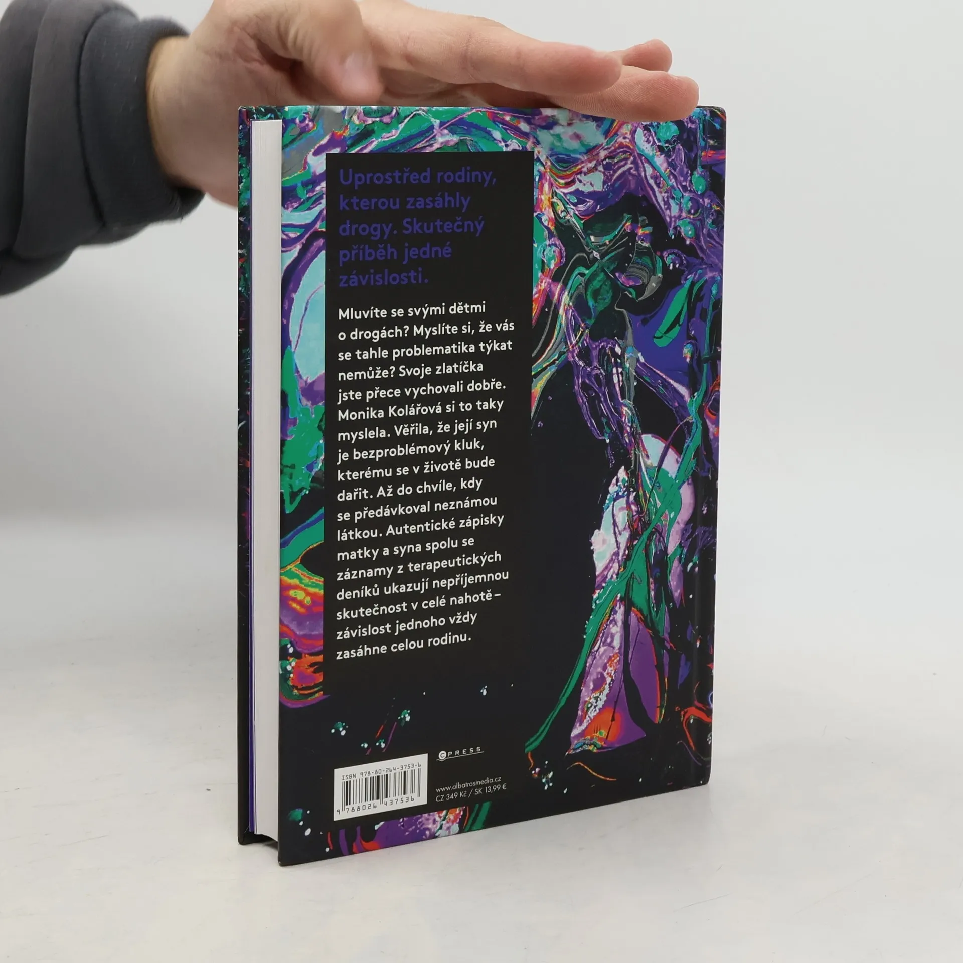 Uprostřed rodiny, kterou zasáhly drogy. Skutečný příběh jedné závislosti. Mluvíte se svými dětmi o drogách? Myslíte si, že vás se tahle problematika týkat nemůže? Svoje zlatíčka jste přece vychovali dobře. Monika Kolářová si to taky myslela. Věřila, že její syn je bezproblémový kluk, kterému se v životě bude dařit. Až do chvíle, kdy se předávkoval neznámou látkou. Autentické zápisky matky a syna spolu se záznamy z terapeutických deníků ukazují nepříjemnou skutečnost v celé nahotě – závislost jednoho vždy zasáhne celou rodinu.