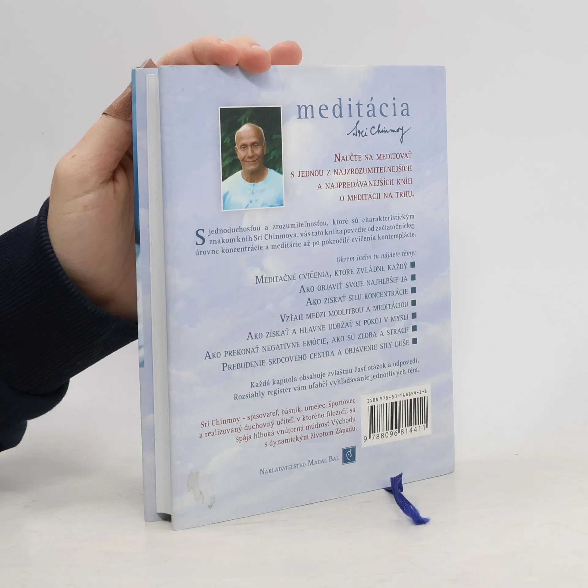 Čo je to meditácia? Meditácia je sebaprebúdzanie človeka a Sebaponúkanie Boha. Keď sa sebaprebúdzanie človeka a ponúkanie Boha stretnú, človek sa stane nesmrteľným vo vnútornom svete a Boh sa stane naplneným vo vonkajšom svete. S jednoduchosťou a zrozumiteľnosťou, ktoré sú charakteristickým znakom kníh Sri Chinmoya, vás táto kniha bude sprevádzať od začiatočnickej úrovne koncentrácie až po pokročilé cvičenia kontemplácie. Navyše každá kapitola obsahuje zvláštnu časť otázok a odpovedí. Medzi inými tu nájdete témy: Meditačné cvičenia pre každého •Ako objaviť svoje najhlbšie ja •Ako si rozvinúť silu koncentrácie •Vzťah medzi modlitbou a meditáciou •Ako nájsť a udržať si pokoj mysle •Ako prekonať negatívne emócie - hnev a strach •Naučte sa počúvať „tichý hlas“ vo svojom vnútri •Prebudenie srdcového centra a objavenie sily duše