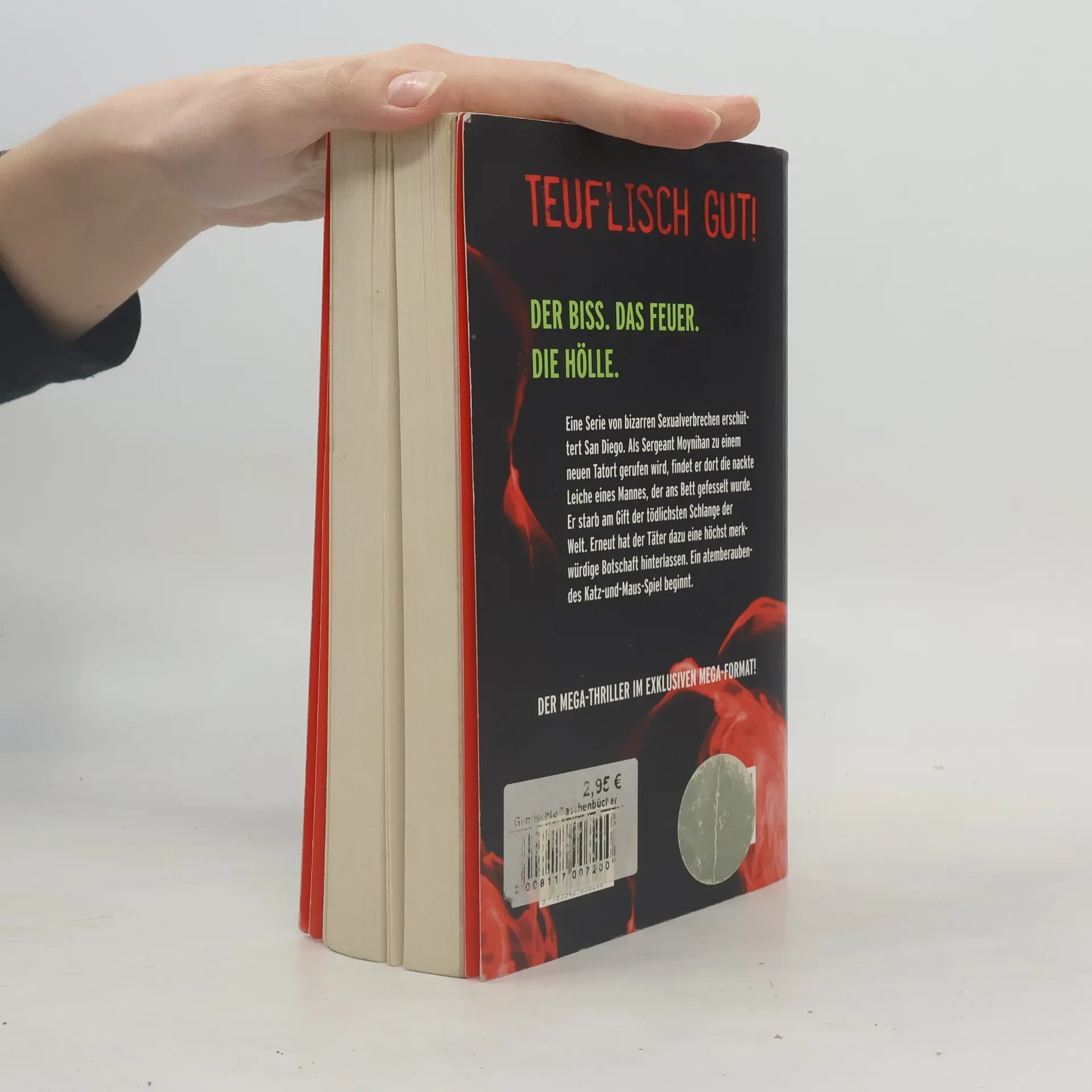 Detective Sergeant Seamus äShayä Moynihan, Polizist in San Diego, ist Ex-Baseball-Profi, geschieden und lebt alleine auf seinem Hausboot. Aufgrund seines ungeregelten Polizeijobs fällt es ihm schwer, sich regelmässig un seinen Sohn zu kümmern. Eines Tages erschüttert eine spektakuläre Mordserie die Stadt: Ein Serienmörder tötet seine Opfer durch den Biss hochgiftiger Schlangen und hinterlässt am Tatort in Blut geschriebene Bibelzitate. Ein Schlangenbändiger und ein Drogenhändler sind die ersten Verdächtigen. Doch Moynihans 1. heisse Spur führt ihn in die ländliche Abgeschiedenheit von Alabama und zu einer dort ansässigen schlangenbeschwörenden Sekte. - Spannungs- und actionreicher Thriller mit einem sympathischen Helden