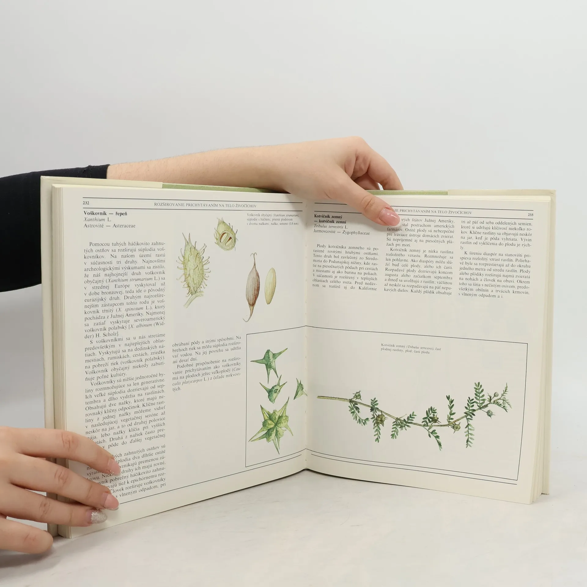 Kapitoly: Všeobecná časť-Rozmnožovanie semenných rastlín, Rozširovanie, Klíčenie a klíčny odpočinok, Špeciálna časť-Samorozširovanie-autochória, Vystreľovanie semien z plodov, Rozširovanie rozrastaním rastlín, Rozširovanie hygroskopickými útvarmi, Rozširovanie vetrom-anemochória, Lietanie drobulinkých semien, Lietanie páperovitých diaspór, Lietanie krídlatých diaspór, Unášanie diaspór po zemi, Vytriasanie diaspór z rastlín. Rozširovanie vodou-hydrochória, Plávanie páperovitých a krídlatých diaspór, Plávanie diaspór so vzdušnými priestormi, Plávanie semien s nepriepustným osemením, Plávanie vegetatívnych diaspór, Rozširovanie dažďovými kvapkami, Rozširovanie živočíchmi-zoochória, Rozširovanie prichytávaním háčikatých, ostnatých a priľnavých diaspór na telo živočíchov, Rozširovanie diaspór trusom a vývržkami, Rozširovanie diaspór pri stavbe hniezd, pri kŕmení mláďat, robení zimných zásob a stratách pri zbere potravy, Rozširovanie diaspór mravcami, Rozširovanie človekom-hemerochória, Rozširovanie znečisteným osivom, Rozširovanie pri obrábaní pôdy, Rozširovanie dopravou, Rozširovanie s odpadom a zeminou, Rozširovanie zámerné, Rozširovanie rôznotvarých diaspór jedného druhu-polychória, Terminologický slovník, Register slovenských názvov, Register českých názvov, Register latinských názvov. Prvé vydanie. Cena knihy v čase vydania: 98.- Kčs.