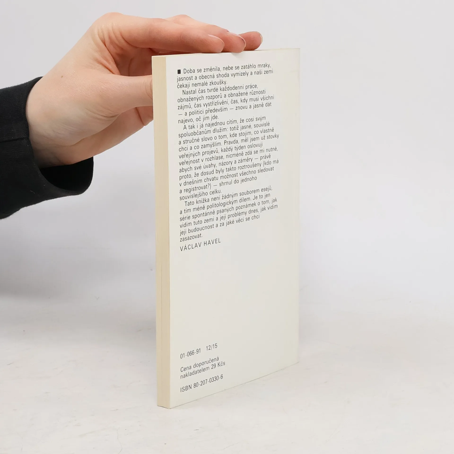 „Tato knížka není žádným souborem esejů, a tím méně politickým dílem. Je to jen série spontánně psaných poznámek o tom, jak vidím tuto zemi a její problémy dnes, jak vidím její budoucnost a za jaké věci se chci zasazovat.“ Václav Havel