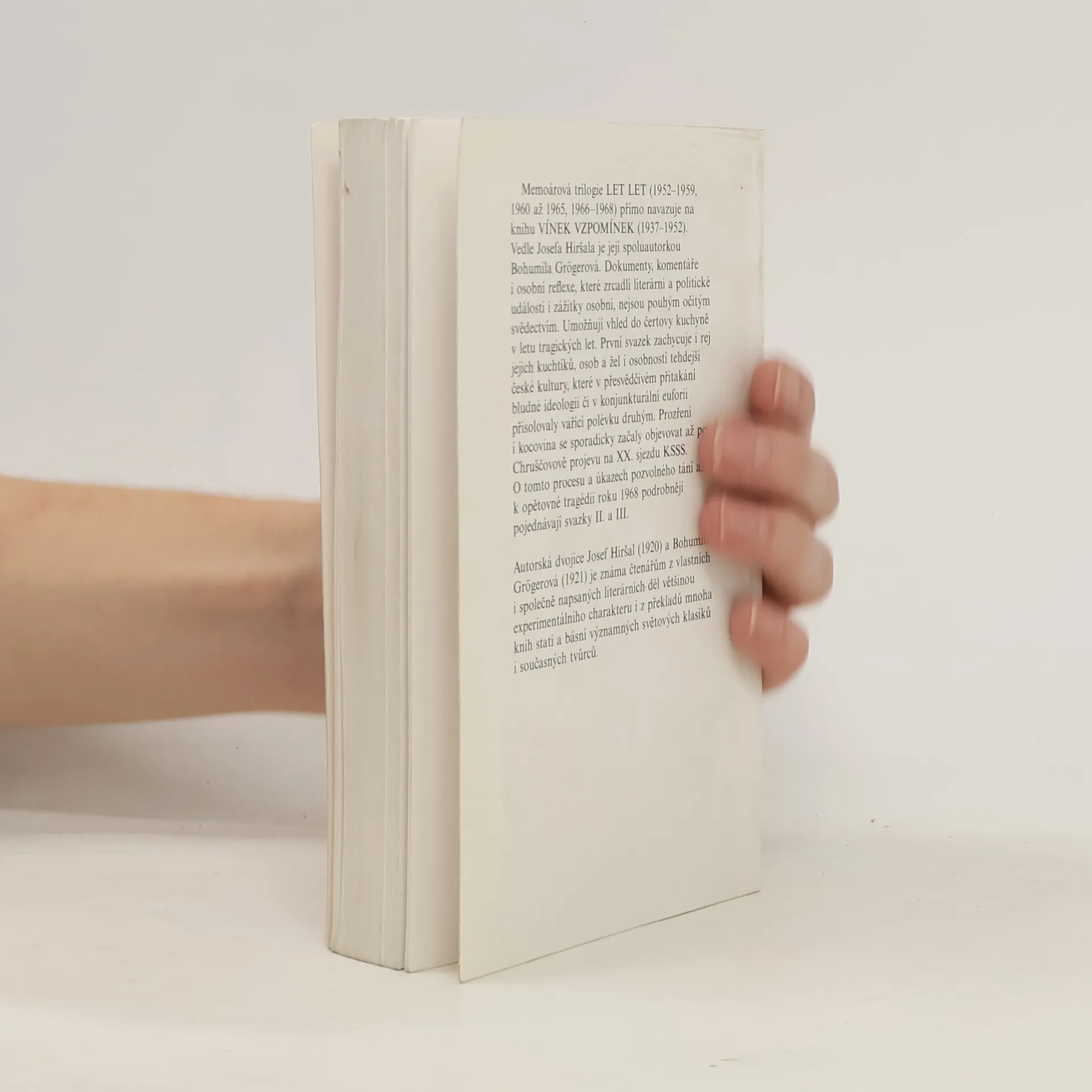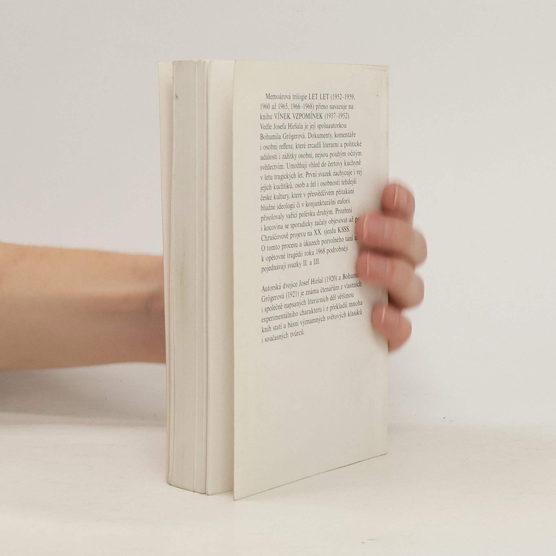 První díl memoárového díla, které patří k nejdůležitějším svědectvím o české kultuře let 1952-1968. Text spojující deníkové zápisy a vzpomínky dvou výjimečných spisovatelů a překladatelů s desítkami básní, próz, dopisů, dokumentů a se stovkami citací z dobového tisku je nejen jedinečným pramenem k poznání české literatury a výtvarného umění daného dvacetiletí, ale i strhujícím beletristickým dvojhlasem, skutečným literárním skvostem. Kniha podrobně zachycuje nejen českou kulturu padesátých let, ale též bohatou kulturní výměnu mezi experimentujícími autory z Čech, Německa, Rakouska, Brazílie a dalších zemí v letech šedesátých, která jsou zde zachycena s mimořádnou detailností a působivostí.... celý text