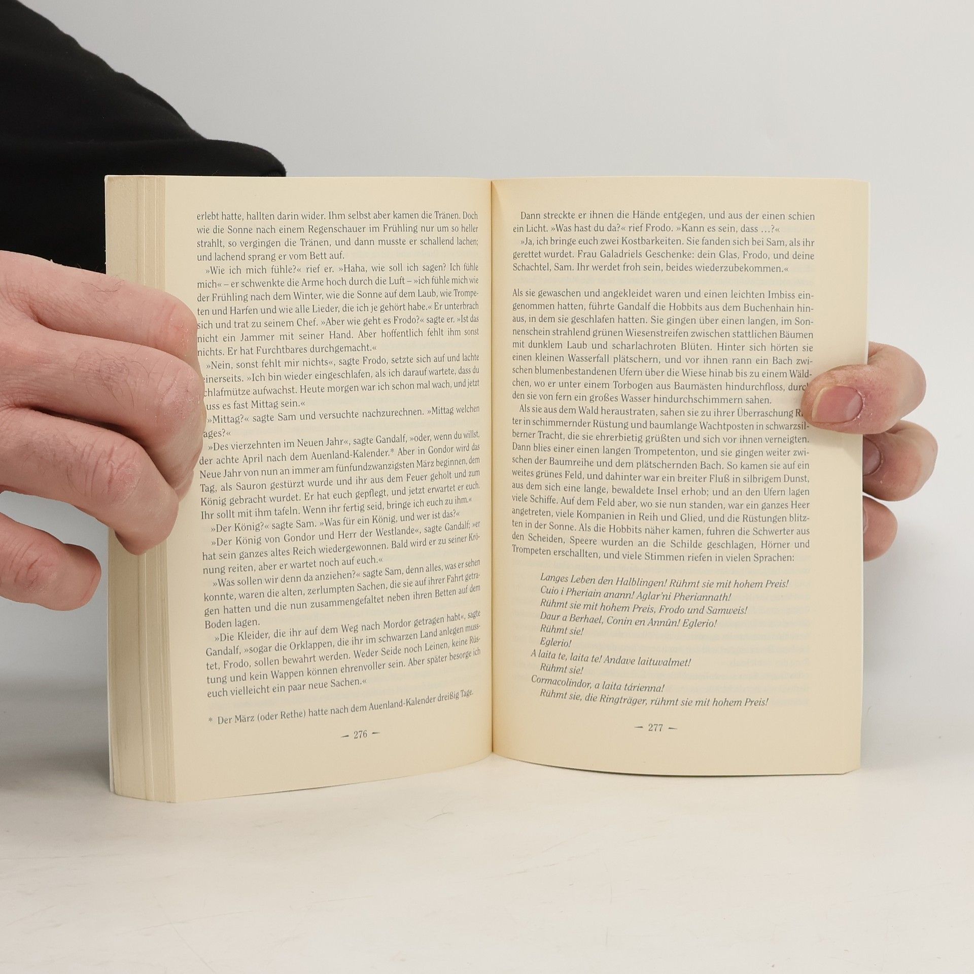 In dieser Trilogie von J. R. R. Tolkien wird die epische Geschichte des Rings erzählt, der immense Macht verleiht, aber auch Verderben bringt. Die Handlung folgt dem Hobbit Frodo Beutlin, der den Auftrag erhält, den Einen Ring, der von dem dunklen Lord Sauron geschmiedet wurde, zu zerstören. Frodo wird von einer Gruppe von Gefährten begleitet, darunter der weise Gandalf, der Krieger Aragorn, der Elb Legolas, der Zwerg Gimli und der treue Hobbit Samweis Gamdschie. Die Erzählung spielt in der fiktiven Welt von Mittelerde und behandelt zentrale Themen wie Freundschaft, Opferbereitschaft, den Kampf zwischen Gut und Böse und die Versuchungen von Macht. Die Charaktere entwickeln sich im Laufe der Geschichte, während sie sich den Herausforderungen und Gefahren stellen, die Saurons finstere Macht mit sich bringt. Die Trilogie umfasst die Reise durch verschiedene Landschaften, von den friedlichen Auen des Auenlandes bis zu den dunklen Tiefen von Mordor. Tolkien nutzt eine Vielzahl von mythologischen Elementen und schafft eine komplexe Welt mit eigenen Sprachen und Kulturen. Die Werke sind sowohl für ihre tiefgründige Handlung als auch für ihre reichhaltige Sprache und detaillierte Weltgestaltung bekannt.