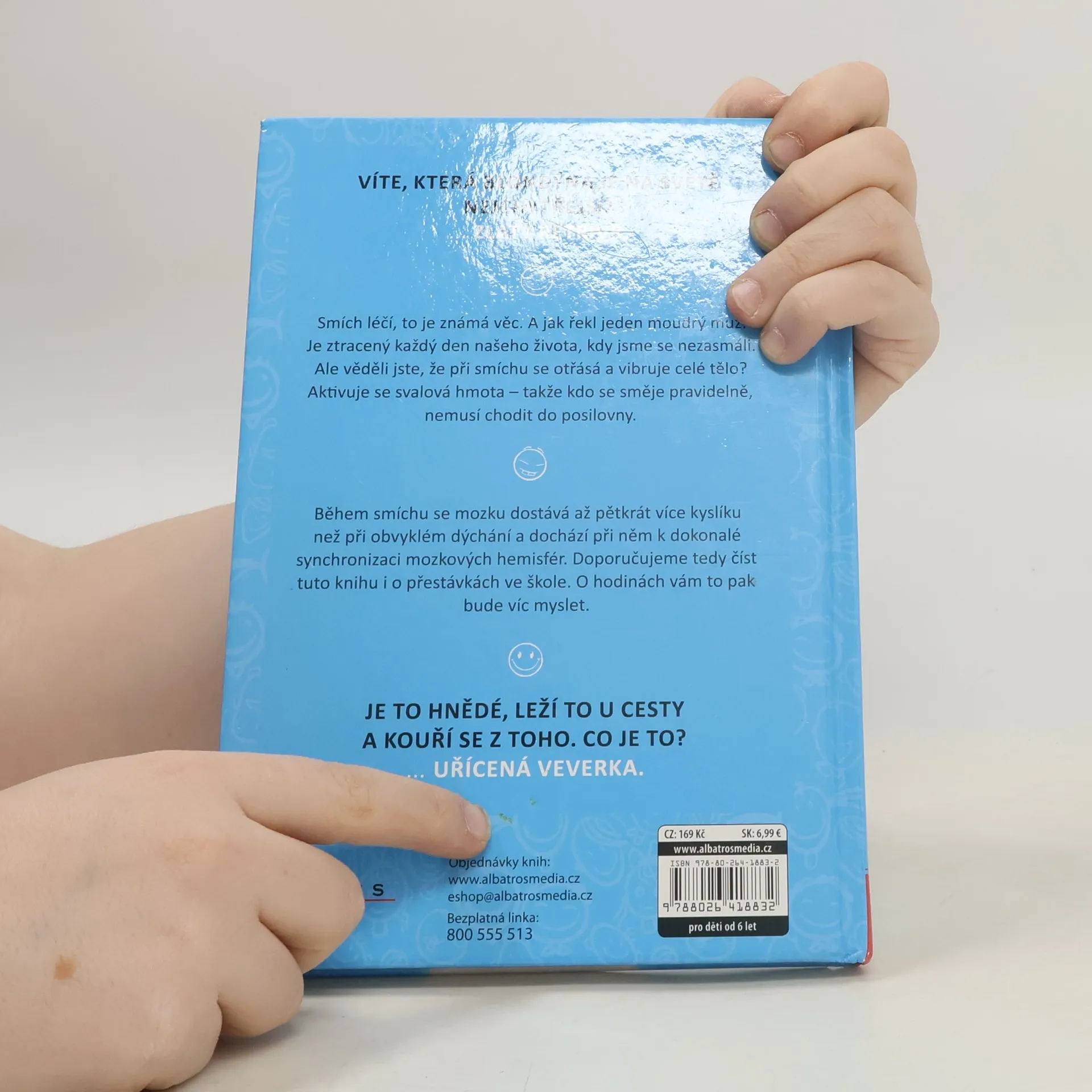 Ilustrovaná kniha plná vtipů udělá radost všem. Ať už se začtete do vtipů o Pepíčkovi, ze školy, o prarodičích, z pohádek nebo dalších, pořádně se zasmějete a budete mít dobrou náladu. Věděli jste, že během smíchu se mozku dostává až 5x více kyslíku než při obvyklém dýchání a dochází při něm k dokonalé synchronizaci mozkových hemisfér? Doporučujeme tedy číst tuto knihu i o přestávkách ve škole. O hodinách vám to pak bude víc myslet.