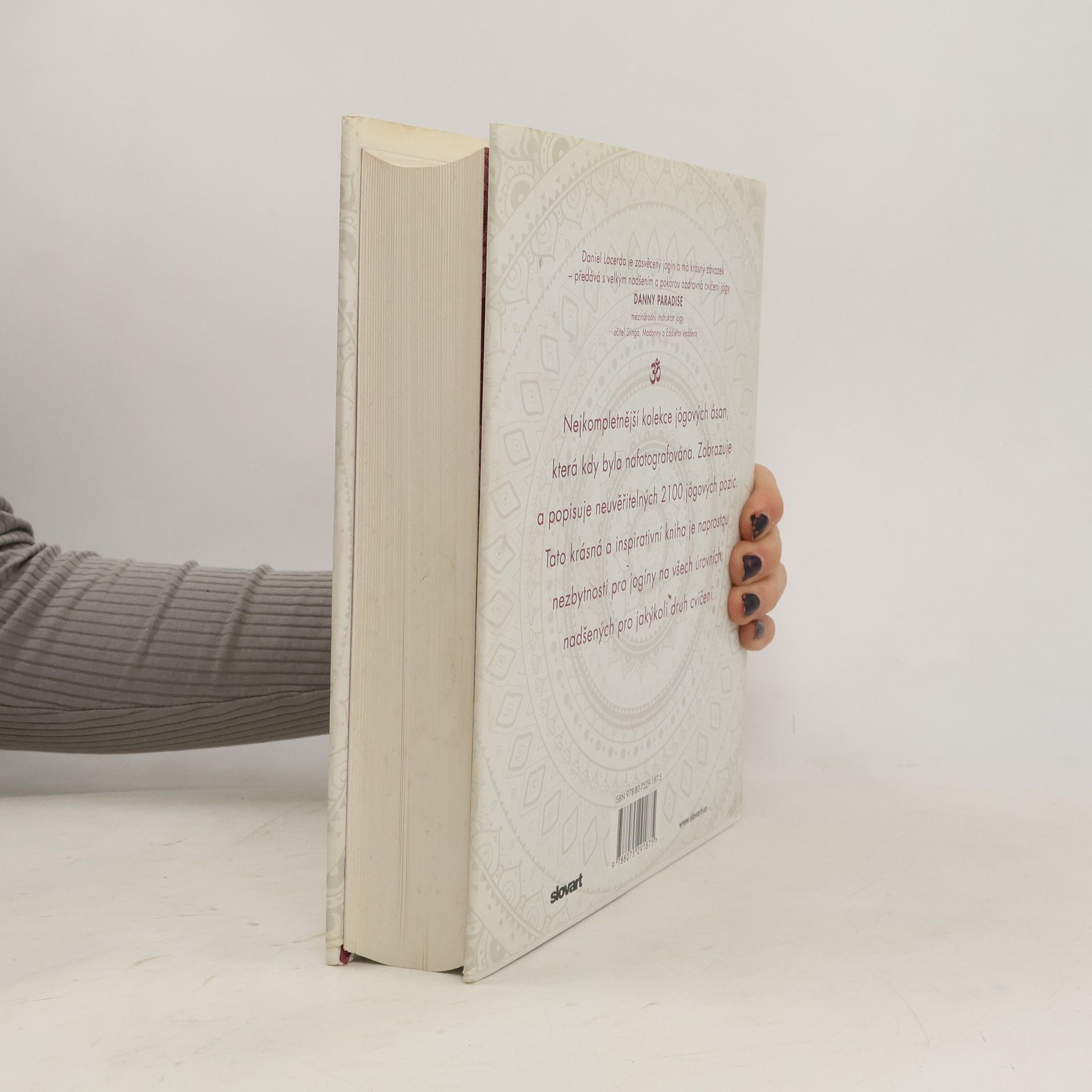 2100 ásan je nebývalá kolekce jógových pozic, stejně tak i umělecké dílo zobrazující krásu a vypracovanost lidského těla při cvičení jógy. Každá z inspirujících fotografií představuje zkušeného jogína v pozici dovedené k dokonalosti. Pozice jsou rozděleny do devíti hlavních kategorií - stojné pozice, pozice v sedě, pozice zaměřené na střed těla, pozice na čtyřech, záklony, balance na pažích, obrácené pozice, pozice na břiše, pozice na zádech - a dále seřazeny do skupin ásan, které obvykle postupují od nejsnažšího provedení k náročnějším variantám. Každá z fotografií je opatřena názvem pozice v češtině a v sanskrtu, alternativními názvy pozice, pokud existují, a popisem různých variant každé pozice, bodu drišti (místo, kam by měla směřovat pozornost) a čakrami, které pozice ovlivňuje. Tvůrcem i fotografem této úžasné kolekce je odborný lektor jógy Daniel Lacerda. Individuálně trénoval a vybral víc než 40 zkušených modelek a modelů ze svého týmu. V úvodu ke knize předkládá podstatné informace, stěžejní pro všechna jogová cvičení, včetně základní historie jógy, úvodu do jógových súter, významu dechu udžají a jak ho používat, vysvětlení pojmů bandha, drišti a čakra, jak meditovat a relaxovat a blahodárné pozice (i varování) týkající se osmi stavů, jako například astma, těhotenství či vysoký krevní tlak. Tato kniha je dokonalým doplňkem cvičení i životního stylu dnešního moderního jogína.