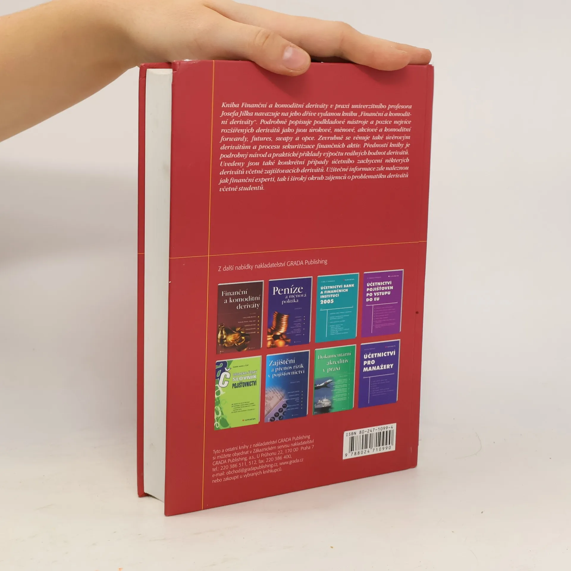 Kniha Finanční a komoditní deriváty v praxi univerzitního profesora Josefa Jílka navazuje na jeho dříve vydanou knihu Finanční a komoditní deriváty. Podrobně popisuje podkladové nástroje a pozice nejvíce rozšířených derivátů jako jsou úrokové, měnové, akciové a komoditní forwardy, futures, swapy a opce. Zevrubně se věnuje také úvěrovým derivátům a procesu sekuritizace finančních aktiv. Předností knihy je podrobný návod a praktické příklady výpočtu reálných hodnot derivátů. Uvedeny jsou také konkrétní případy účetního zachycení některých derivátů včetně zajišťovacích derivátů. Užitečné informace zde naleznou jak finanční experti, tak i široký okruh zájemců o problematiku derivátů včetně studentů.