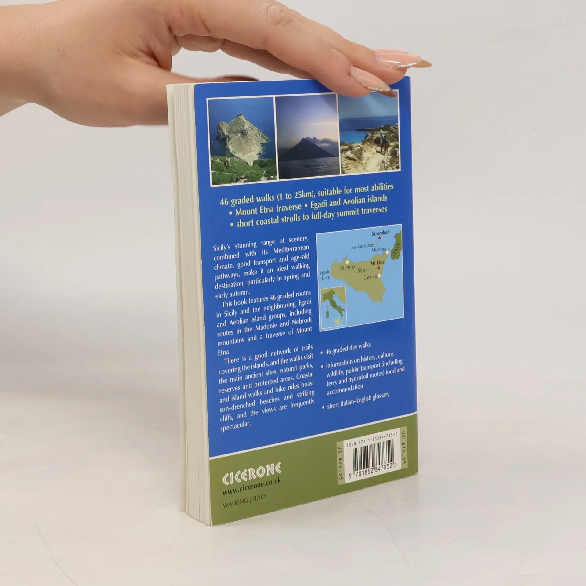 A walking guidebook with 46 graded routes in Sicily, including the Madonie and Nebrodi mountains, the Egadi and Aeolian islands and Mount Etna. Most walks take 3-4 hours, plus some short easy strolls as well as long mountain traverses. Interesting varied terrain, including river valleys, coastal walks, ancient ruins, volcanoes and mountain peaks.