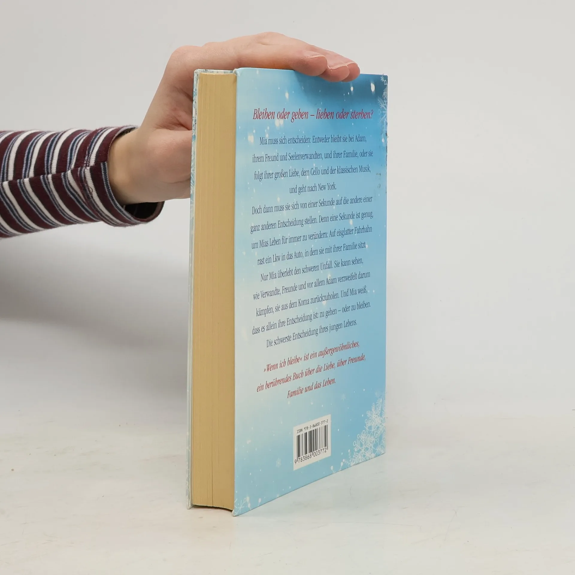Bleiben oder gehen, lieben oder sterben? Mia muss sich entscheiden: Soll sie bei ihrem Freund Adam und ihrer Familie bleiben - oder ihrer grossen Liebe zur Musik folgen und mit ihrem Cello nach New York gehen? Und dann ist von einer Sekunde auf die andere nichts mehr, wie es war: Auf eisglatter Fahrbahn rast ein Lkw in das Auto, in dem Mia mit ihrer Familie sitzt. Sie verliert ihre Familie und steht vor der Entscheidung ihres Lebens: Bleiben oder gehen? äWenn ich bleibeä ist ein aussergewöhnliches, ein berührendes Buch über Liebe, Familie, Freunde und über die Liebe zur Musik. Es gibt wenige Hörbücher, die man nie vergisst. Dieses ist eines! Unsentimental, bewegend, tröstlich und wunderbar Weise.