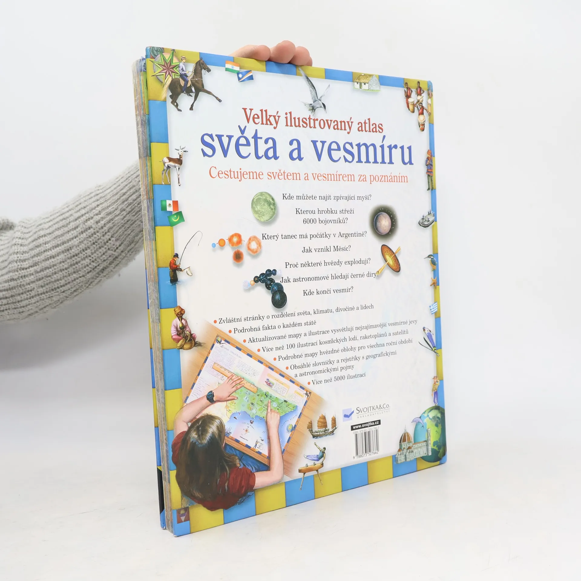Tato kniha naučí děti aktivně studovat a používat různé typy map. Obsahuje velké množství ilustrací světových míst, lidí, reliéfů a způsobu života. Mimo to se s ní za pomoci barevných obrázků a nákresů vydáme i na zábavný výlet napříč celým vesmírem. Knížka obsahuje i praktická cvičení. .
