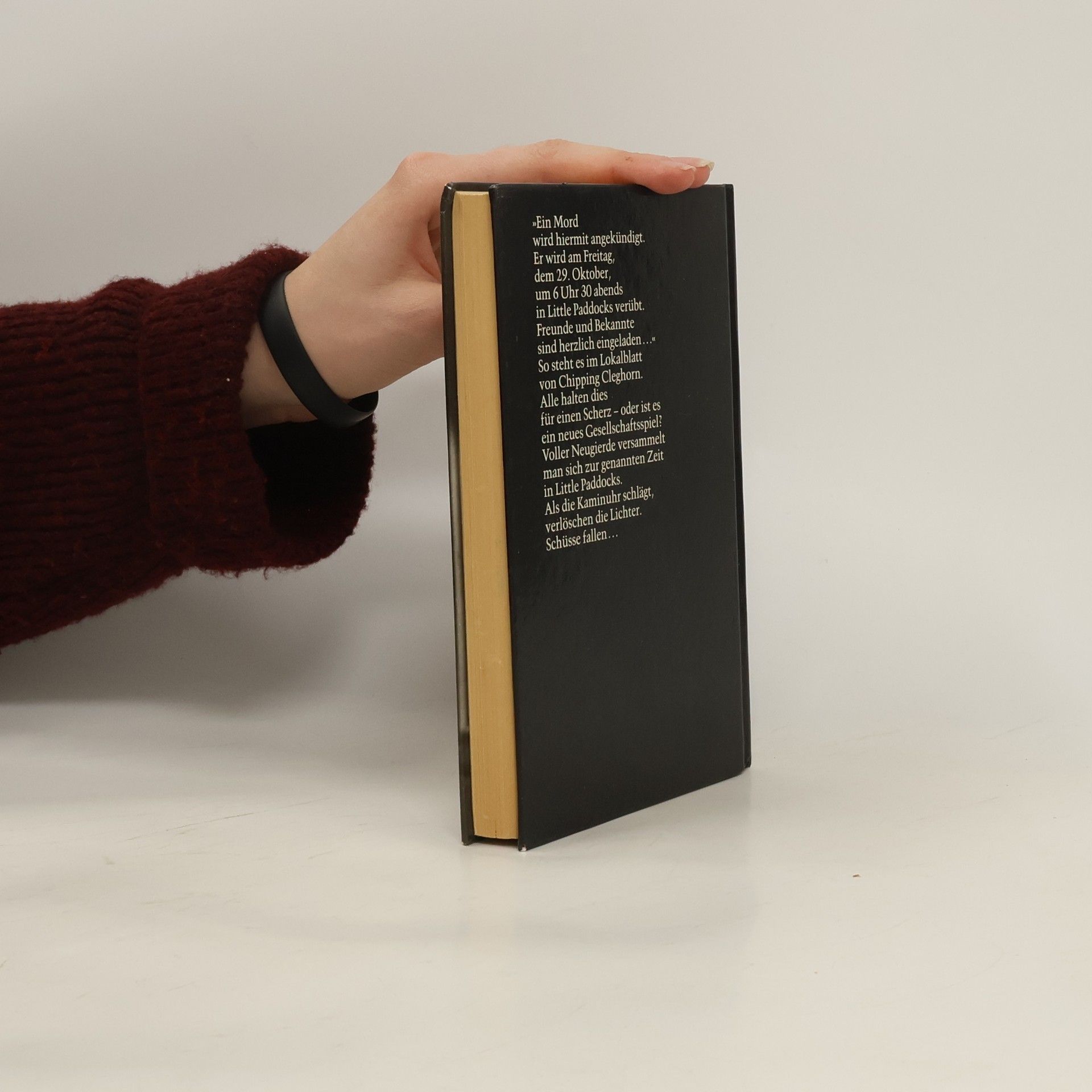 »Am Freitag, den 29. Oktober, wird in Little Paddocks um 18.30 Uhr ein Mord stattfinden. Freunde werden gebeten, diesen Hinweis als Einladung aufzufassen.« So steht es in einer Anzeige im Lokalblatt des Städtchens Chipping Cleghorn. Die Bewohner sind irritiert, aber auch neugierig. In Scharen strömen sie zum Gutshaus. Während ihnen Sherry gereicht wird, geht plötzlich das Licht aus, und ein Schuss fällt. Als das Licht wieder angeht, offenbart sich ein grausames Bild. Miss Marples Beobachtungsgabe ist gefragt, um dieses mörderische Spiel zu durchschauen.