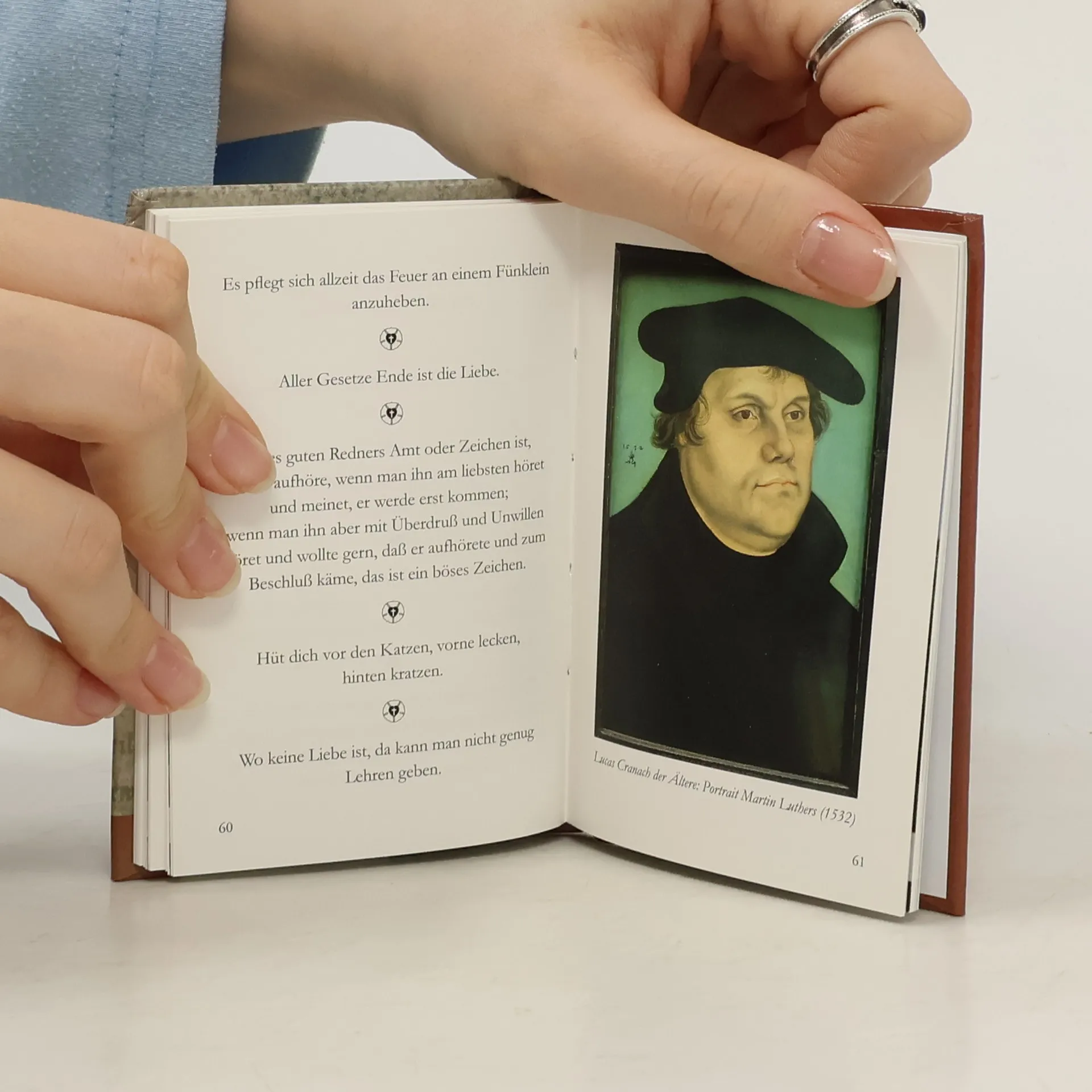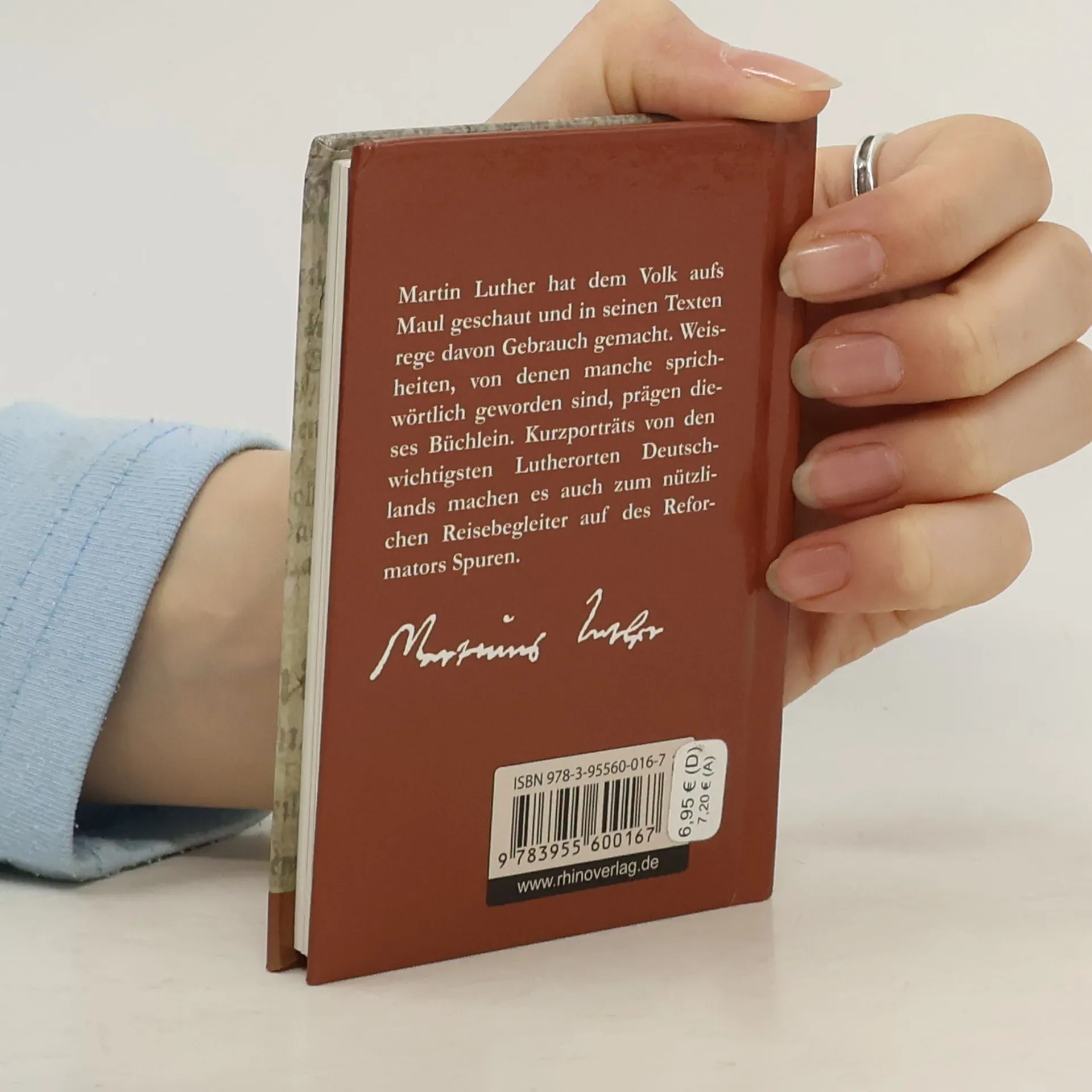 Martin Luther ist beim Ranking der beliebtesten Deutschen im Ausland immer in vorderster Position zu finden. Er hat vor einem halben Jahrtausend die Reformation auf den Weg gebracht und Veränderungen bewirkt. Luthers Thesenanschlag am 31. Oktober 1517 ist das entscheidende Datum der Reformation. Er war der Beginn einer Bewegung, die weltweit Spuren hinterließ. Die Lutherdekade, die bis 2017 reicht, würdigt dieses Ereignis mit zahlreichen Events. Martin Luther hat dem Volk aufs Maul geschaut und in seinen Texten rege davon Gebrauch gemacht. Weisheiten, von denen manche sprichwörtlich geworden sind, prägen dieses Büchlein. Kurzporträts von den wichtigsten Lutherorten Deutschlands machen es auch zum nützlichen Reisebegleiter auf des Reformators Spuren. Luther – Weisheiten und Lebensstationen ist der Band 16 aus der Rhino Westentaschen-Bibliothek. Die „Kleinen Rhinos“ sind kleine, feine Geschenkbücher mit einem breiten Themenspektrum und vermitteln prägnante, kurzweilige und anschaulich bebilderte Informationen. Dazu gehören wichtige Ratgeber-Themen wie Gesundheit und Essen aber auch Themen mit unterhaltend-informativem Charakter und regionale Themen mit überregionaler Ausstrahlung.